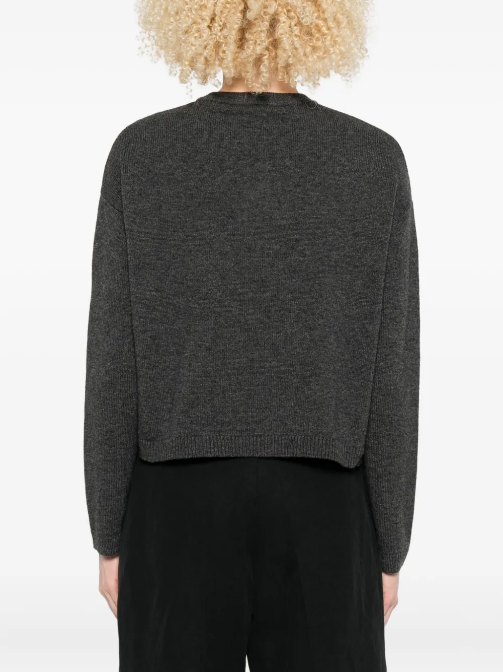 Серая шерстяная смесь, планка на пуговицах, круглый вырез, длинные рукава