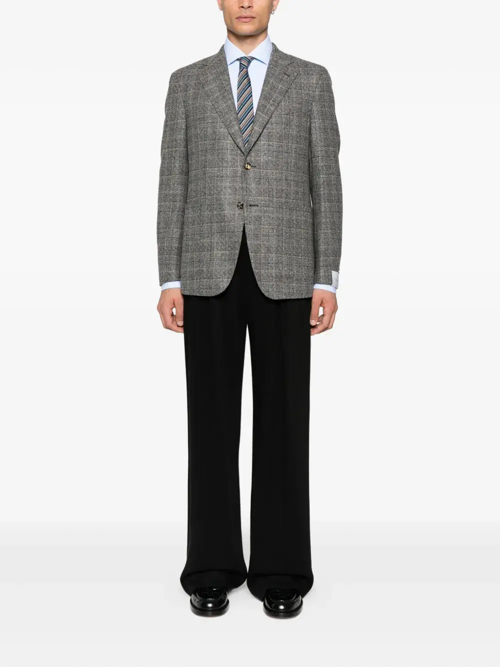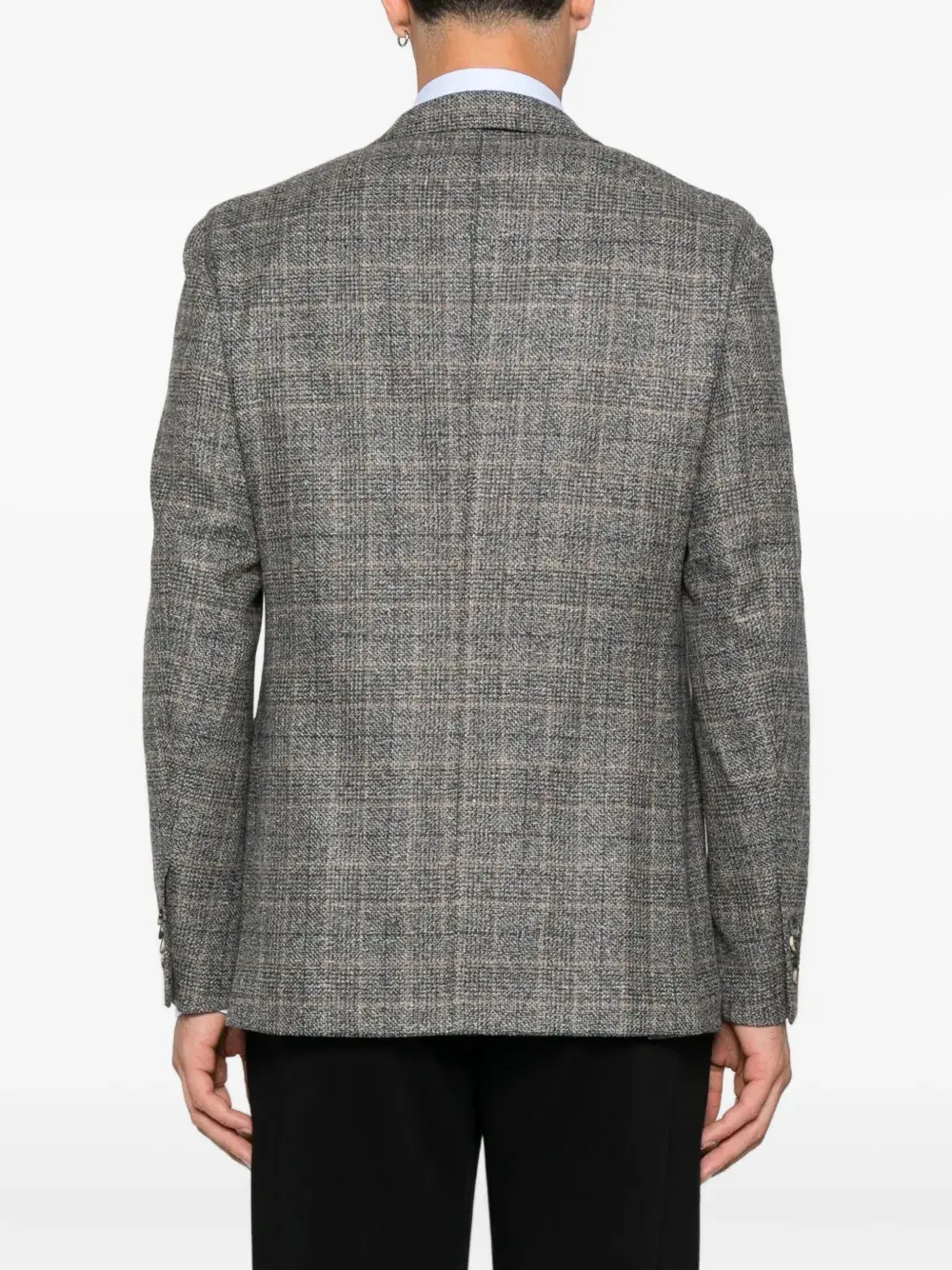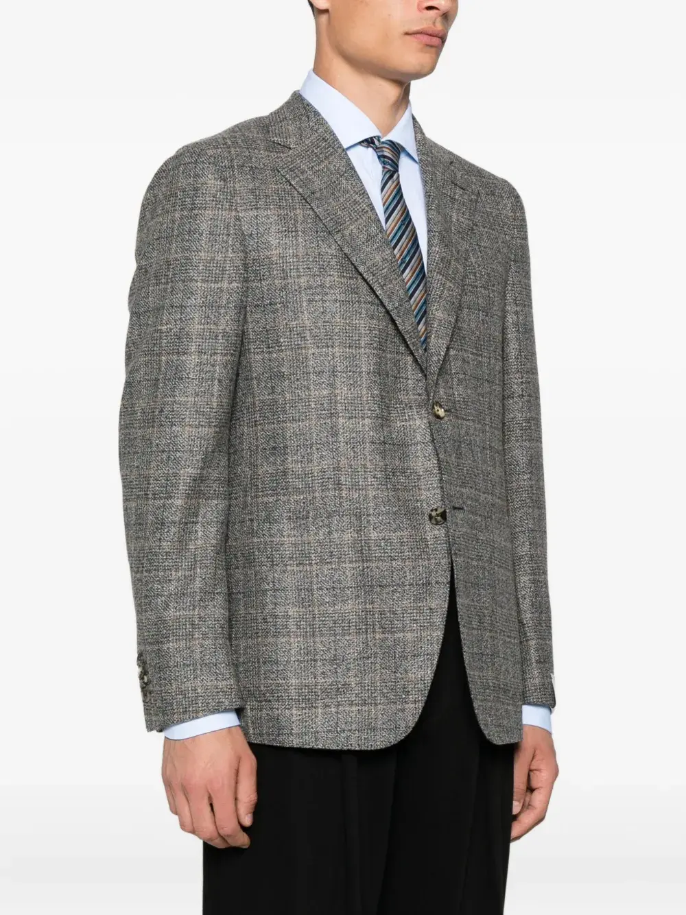 Серый клетчатый узор, застежка на пуговицы, отложной воротник, длинные рукава