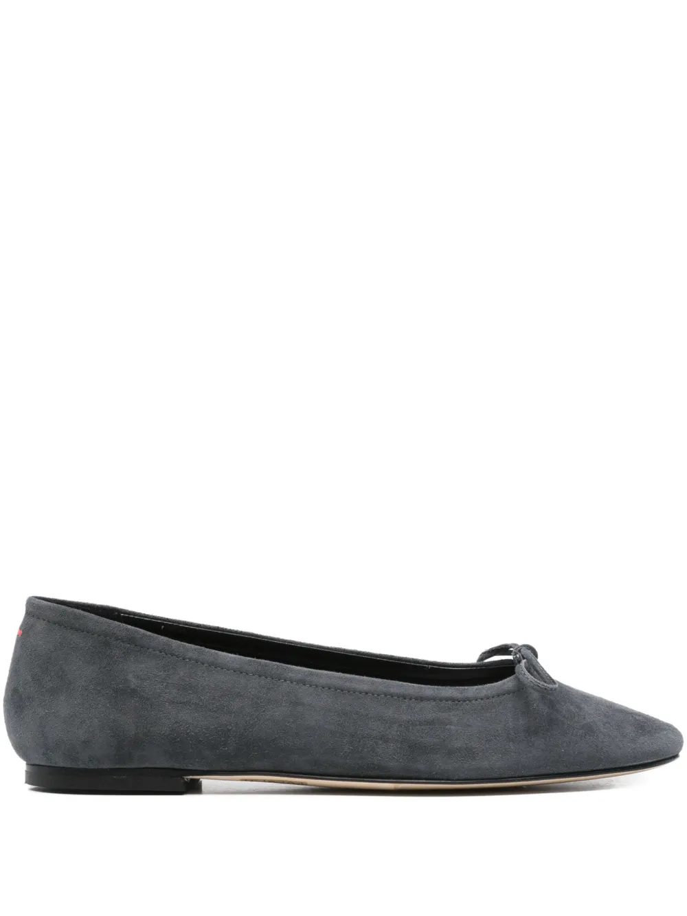 Верх из замши темно-серого цвета, квадратный носок, маленький бант, плоская подошва, модель slip-on