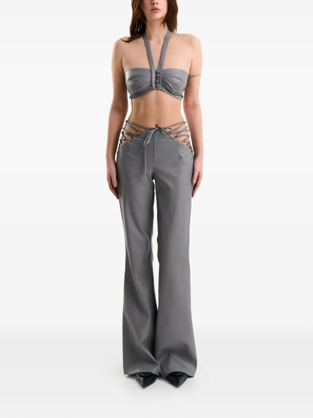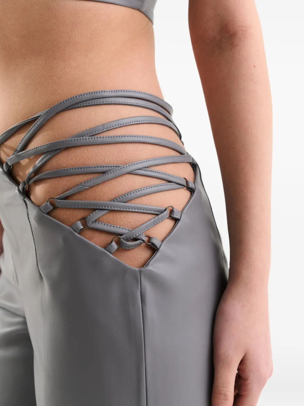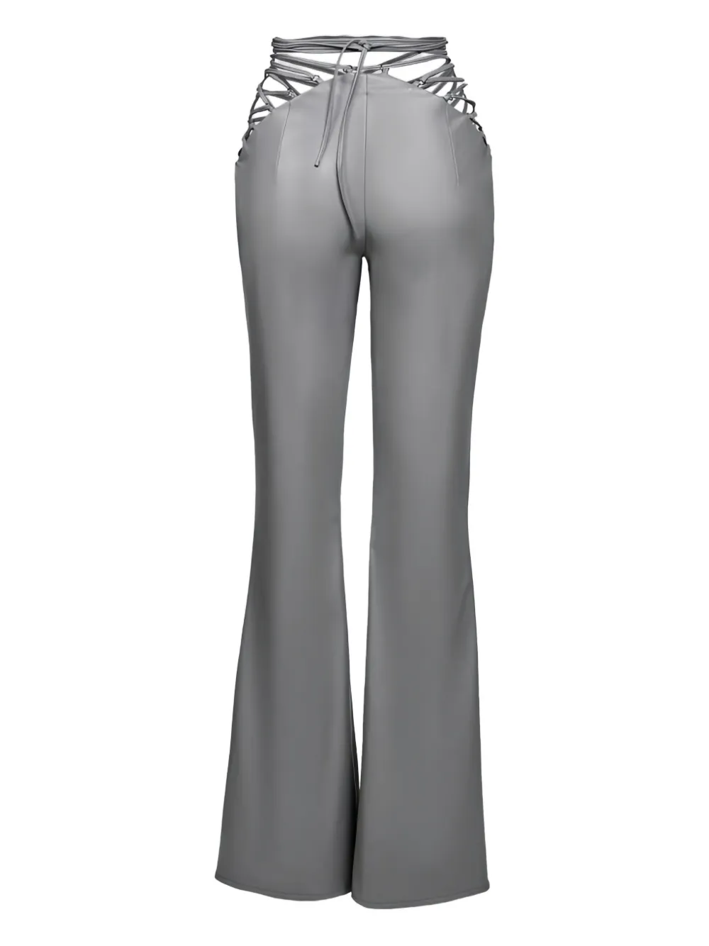 Серые расклешенные штанины со шнуровкой по бокам и завязками