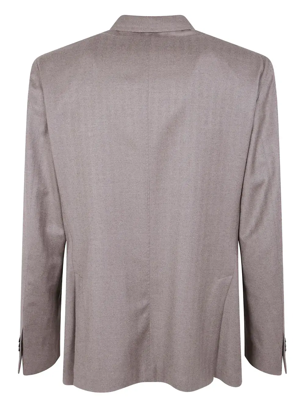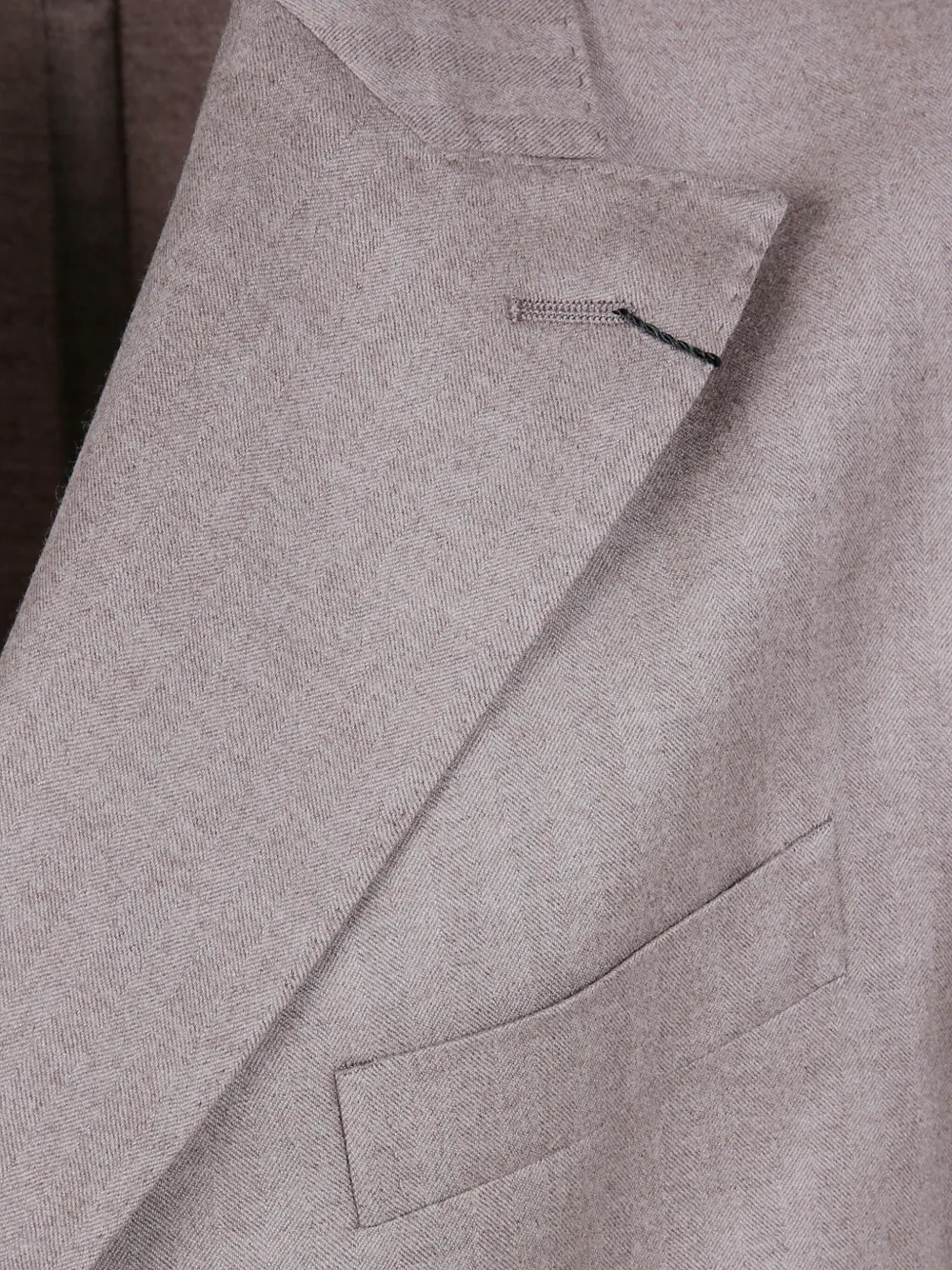 Голубовато-серый двубортный пиджак с узором «елочка» и накладными карманами