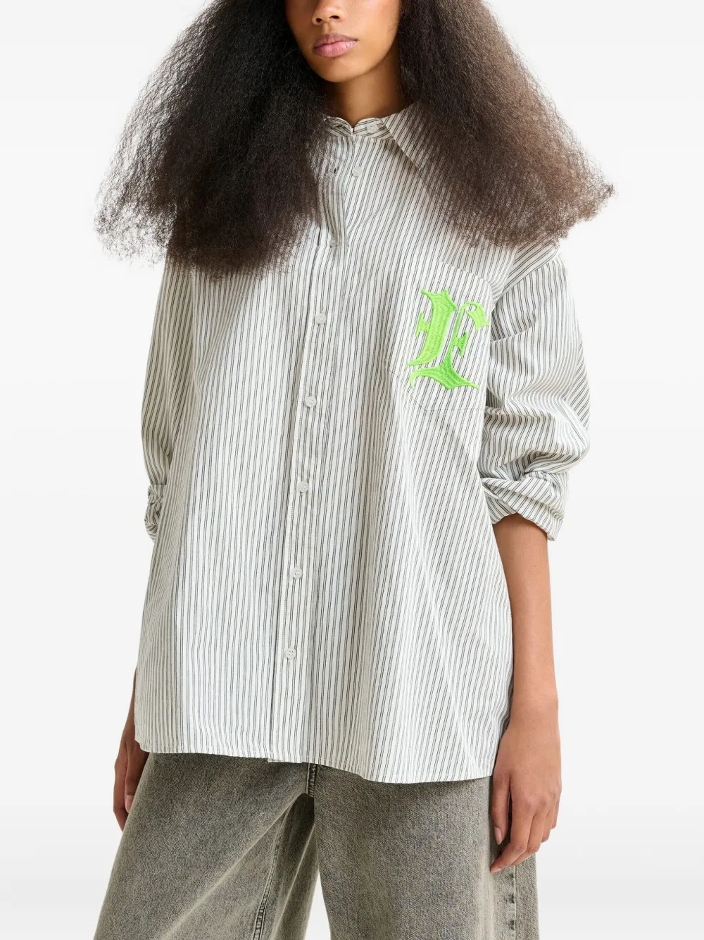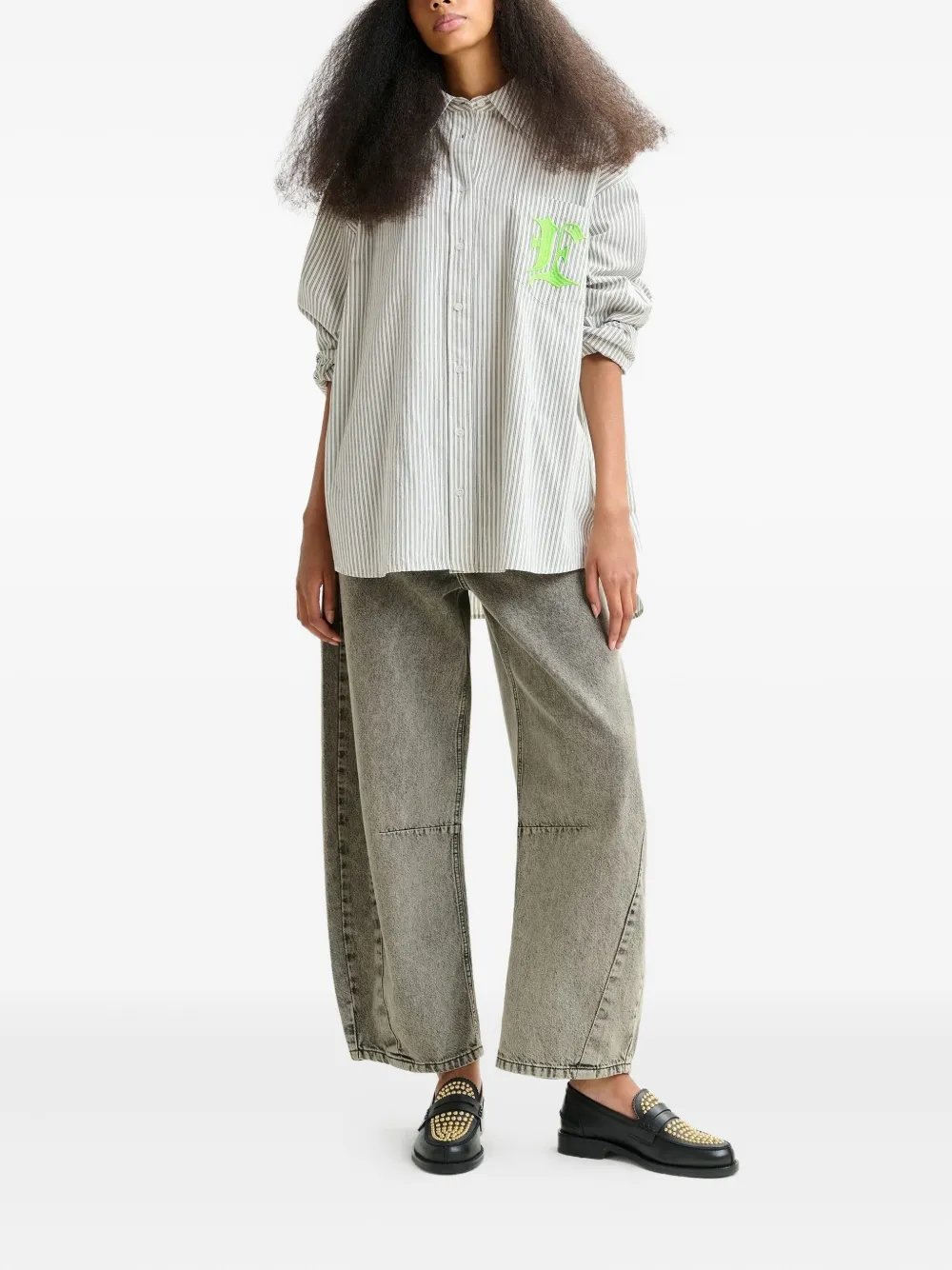 Полосатая рубашка с вышитым карманом Essentiel Antwerp, серый