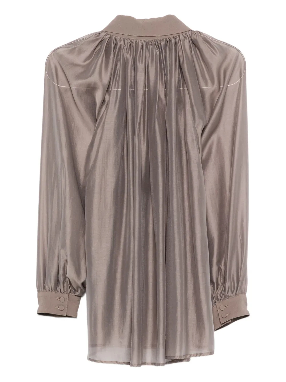 Минеральный серый, присборенные рукава, классический воротник, длинные рукава, застежка на пуговицы спереди
