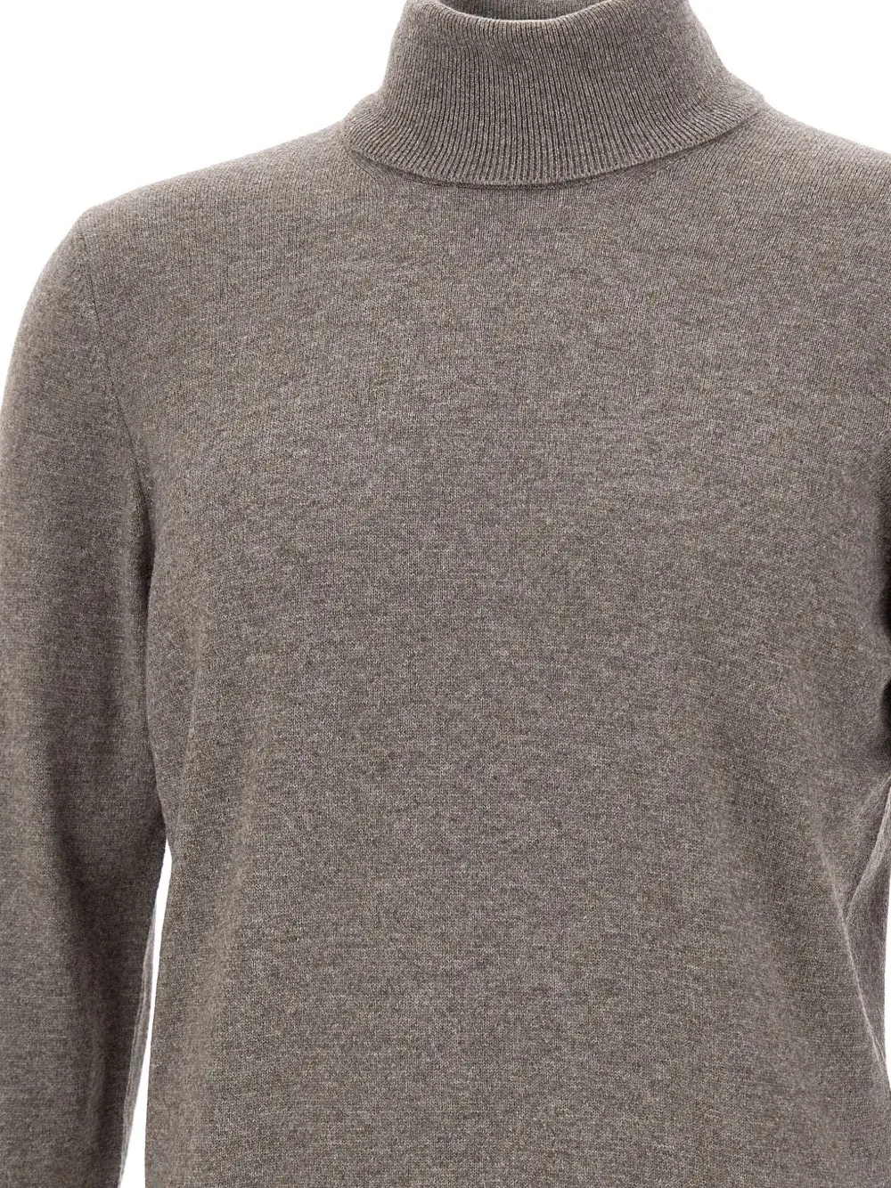 Серая водолазка с длинными рукавами, ребристые края, смесь шерсти и кашемира, высокий воротник