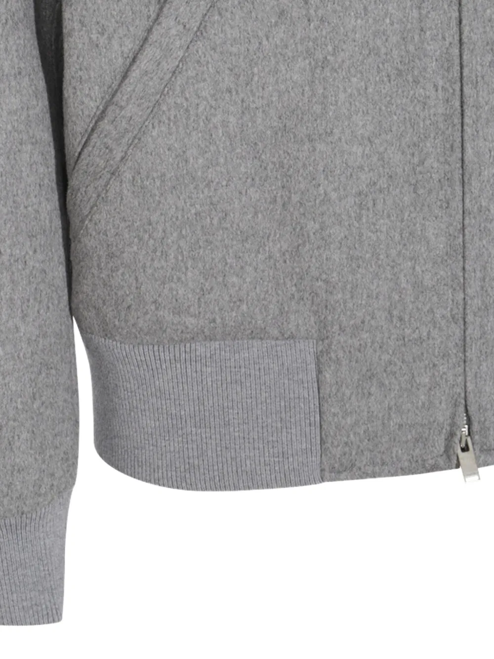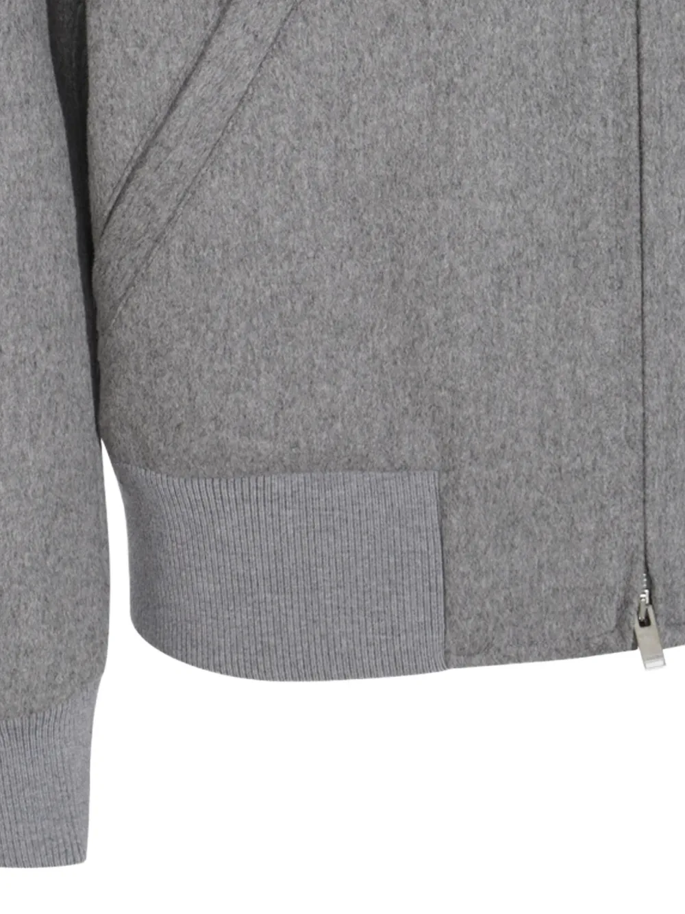 Серая шерстяная застежка-молния, ребристый подол, ребристые манжеты, фасон «бомбер»
