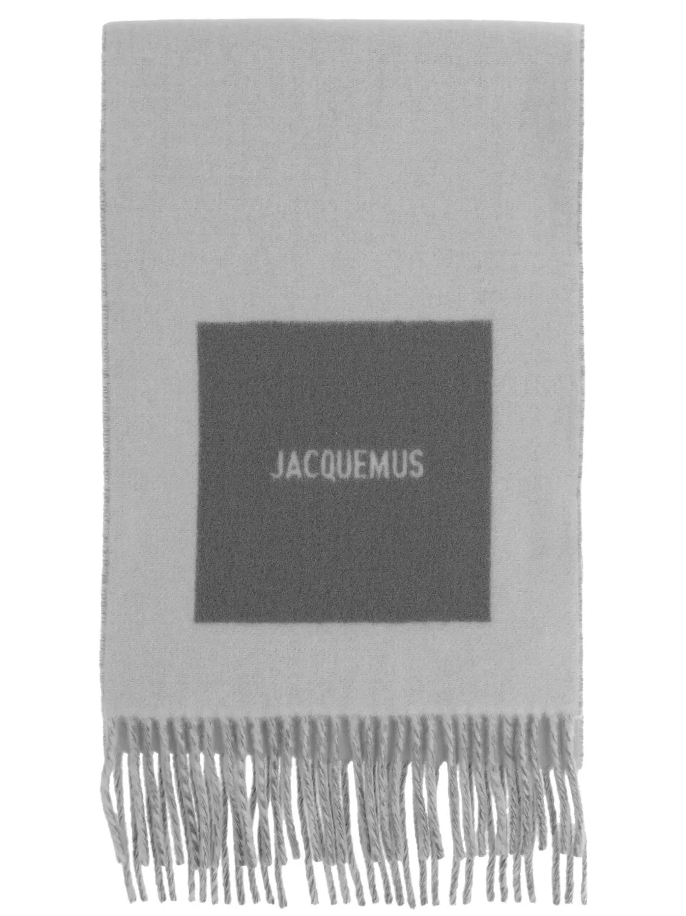Шарф с бахромой и логотипом JACQUEMUS, серый