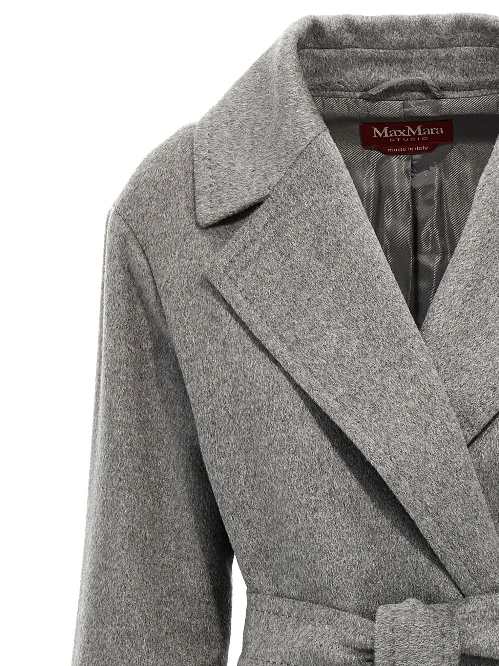 Кашемировое пальто с поясом MAX MARA, серый