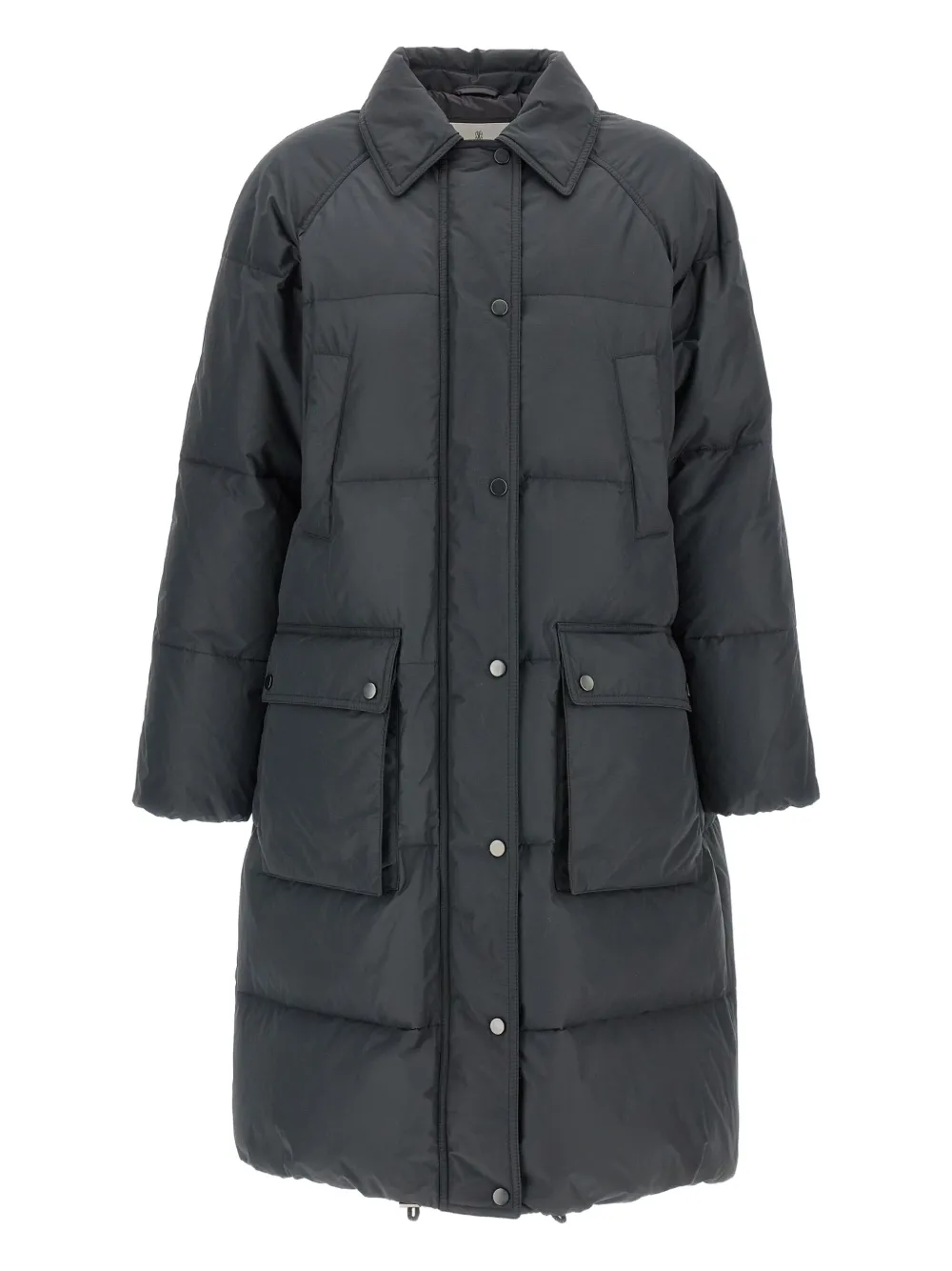 Стеганое пуховое пальто с капюшоном Brunello Cucinelli, серый