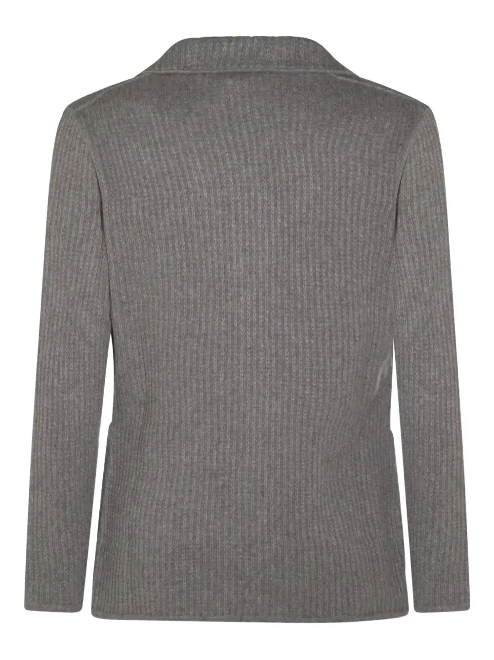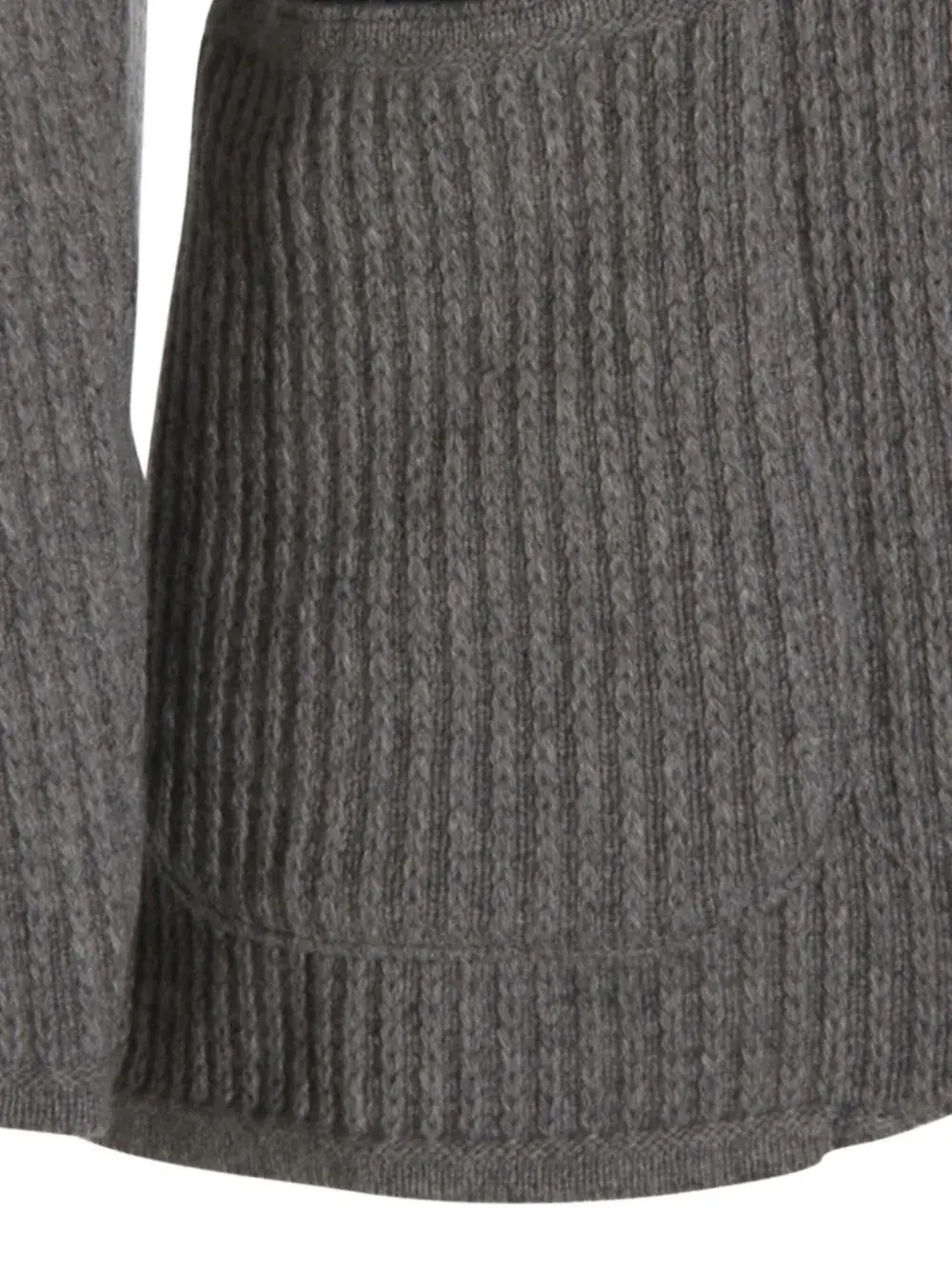 Серая ребристая текстура, застежка на пуговицы, накладной карман, деталь с выемкой на лацкане