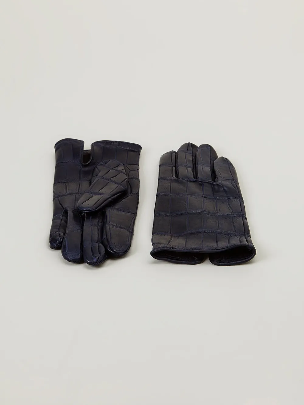 Темно-синие перчатки с разрезом из кожи аллигатора и шелка от L'eclaireur Made By.