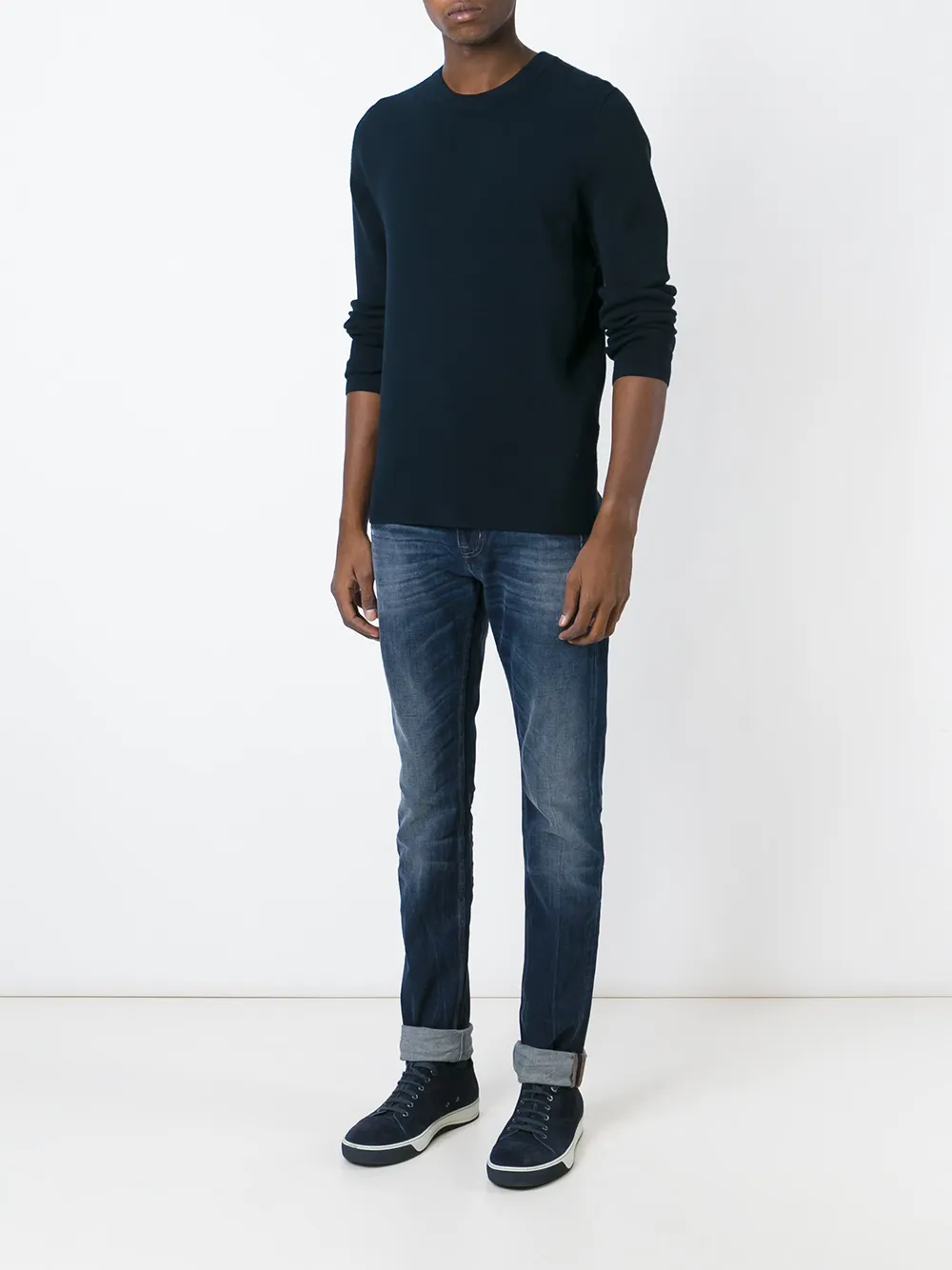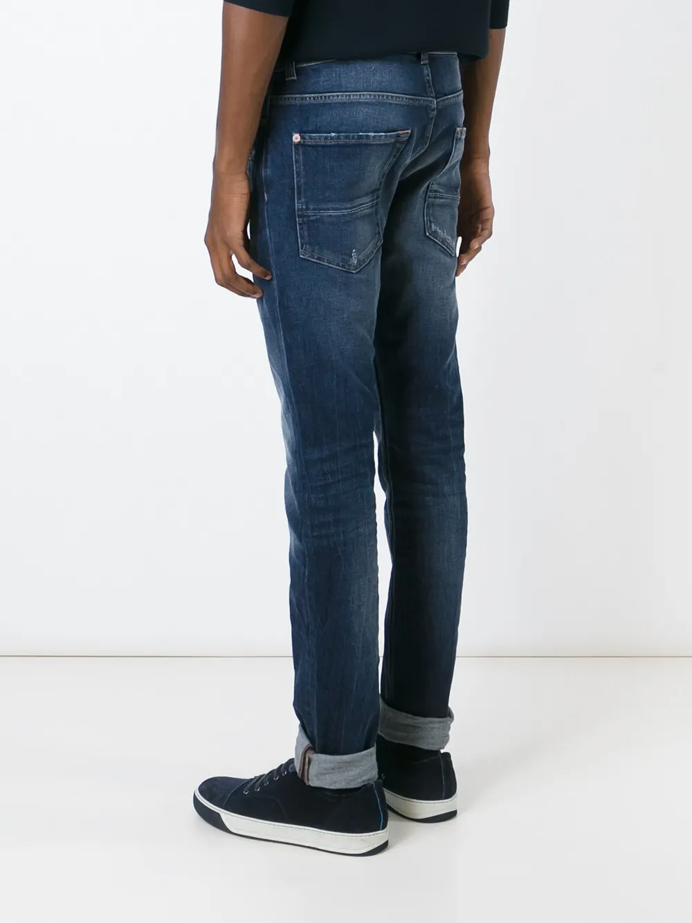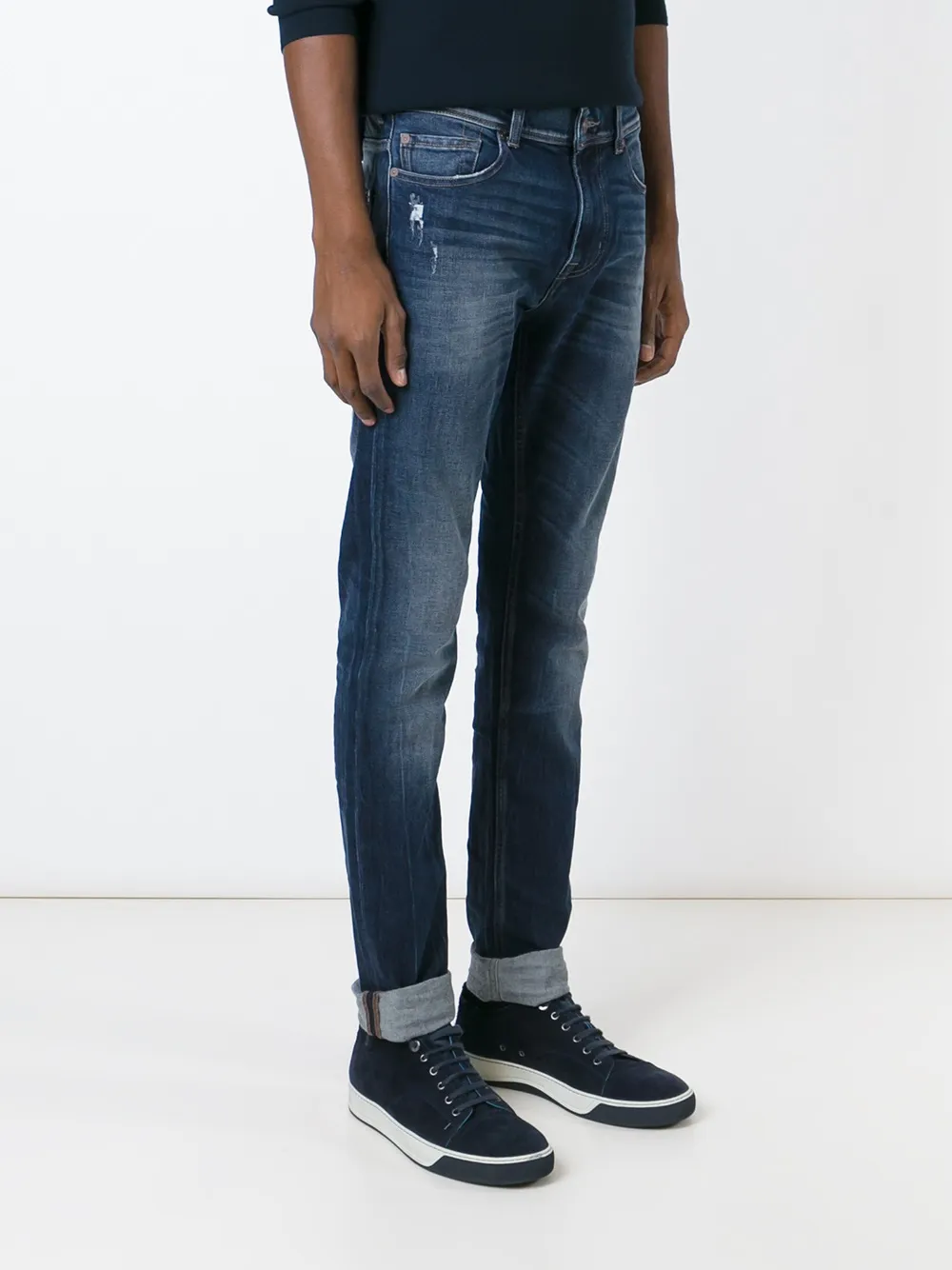 Синие джинсы кроя слим из эластичного хлопка с линялым эффектом от 7 For All Mankind. POSITIVELY CONSCIOUS: Агентство Good On You, автор рейтинга ответственных брендов, оценило 7 FOR ALL MANKIND на 3 из 5 баллов. Этот бренд старается сократить количество отходов, следит за цепочками поставок, а также не использует мех, пух, ангору и кожу экзотических животных.