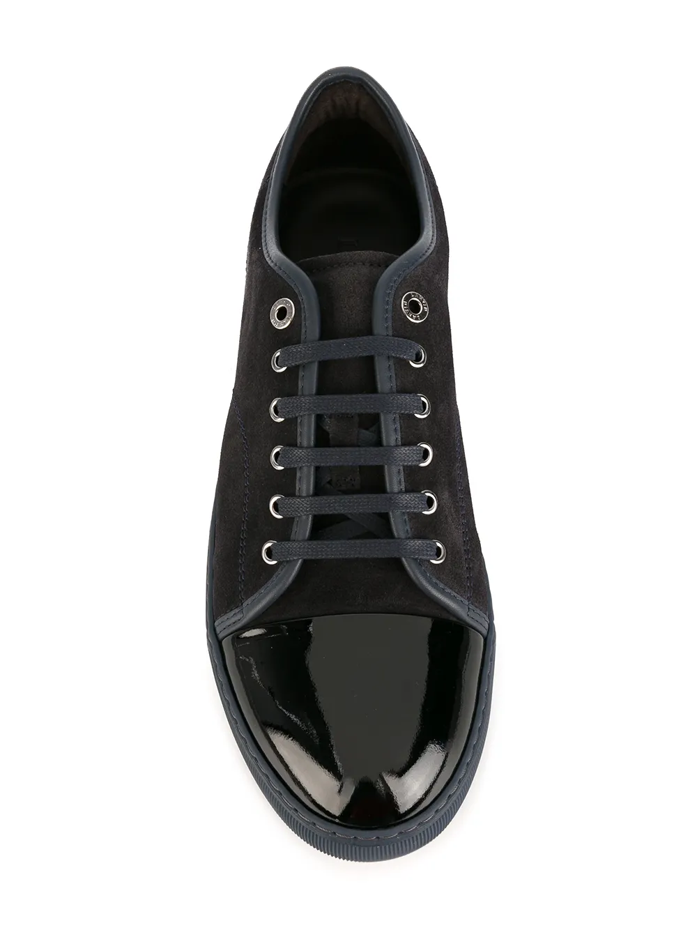 Темно-синие кожаные кеды с лакированным носком от Lanvin(Ланвин).