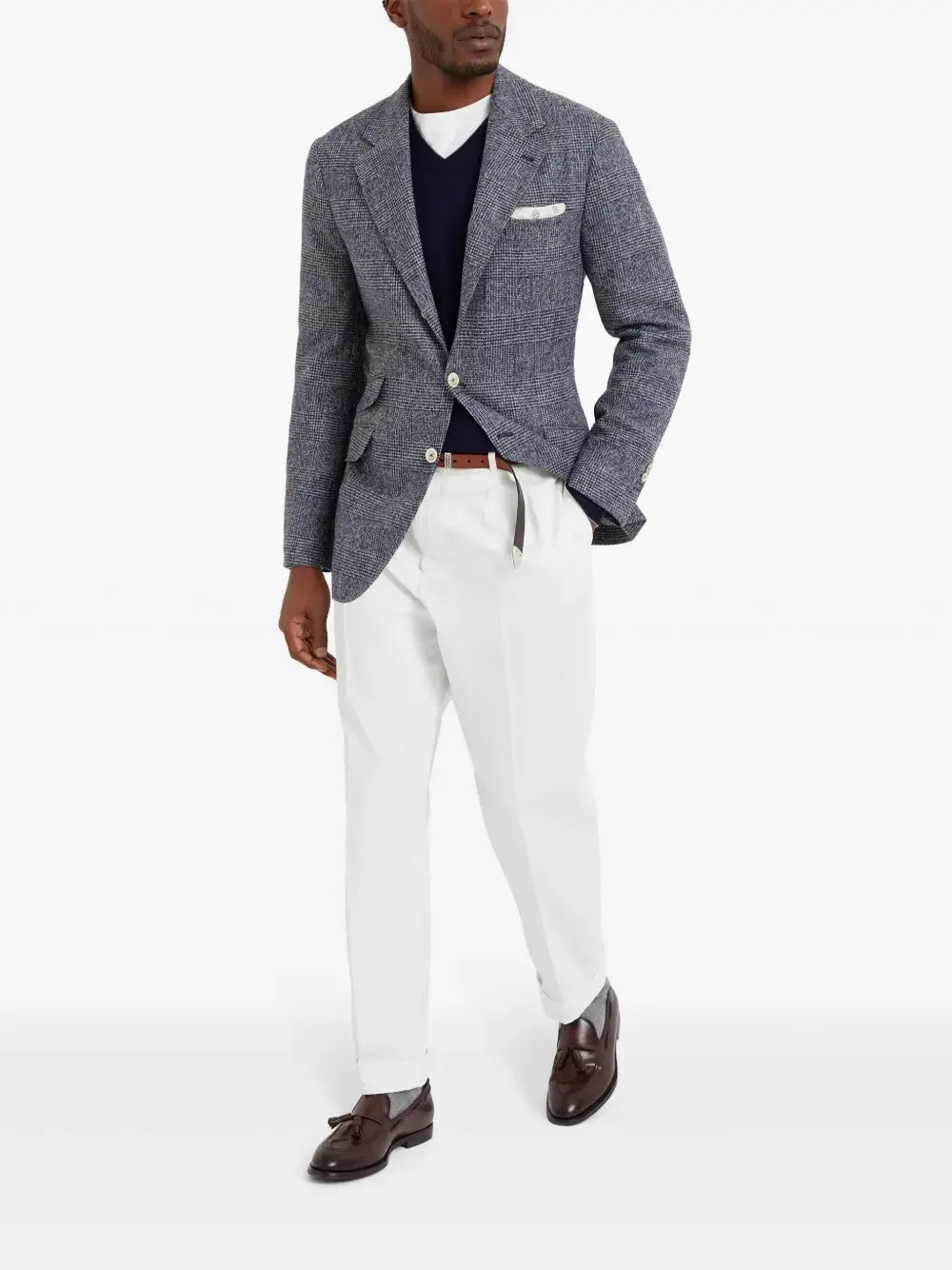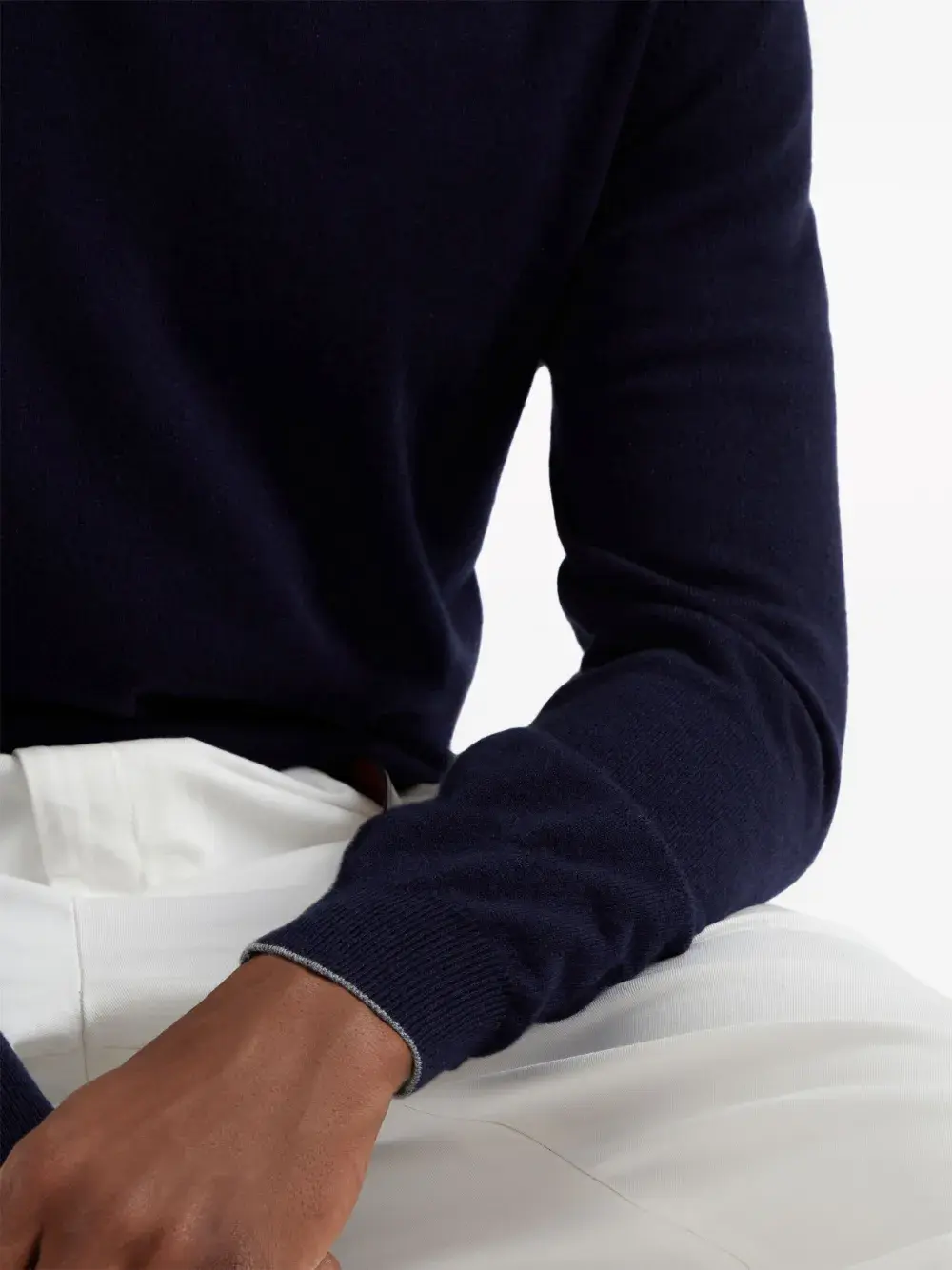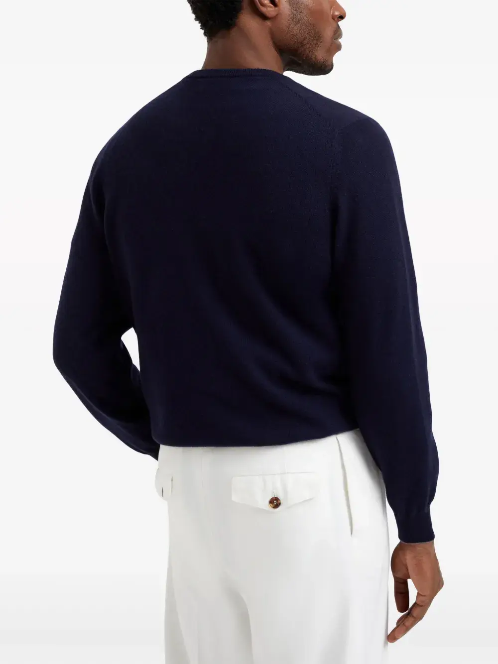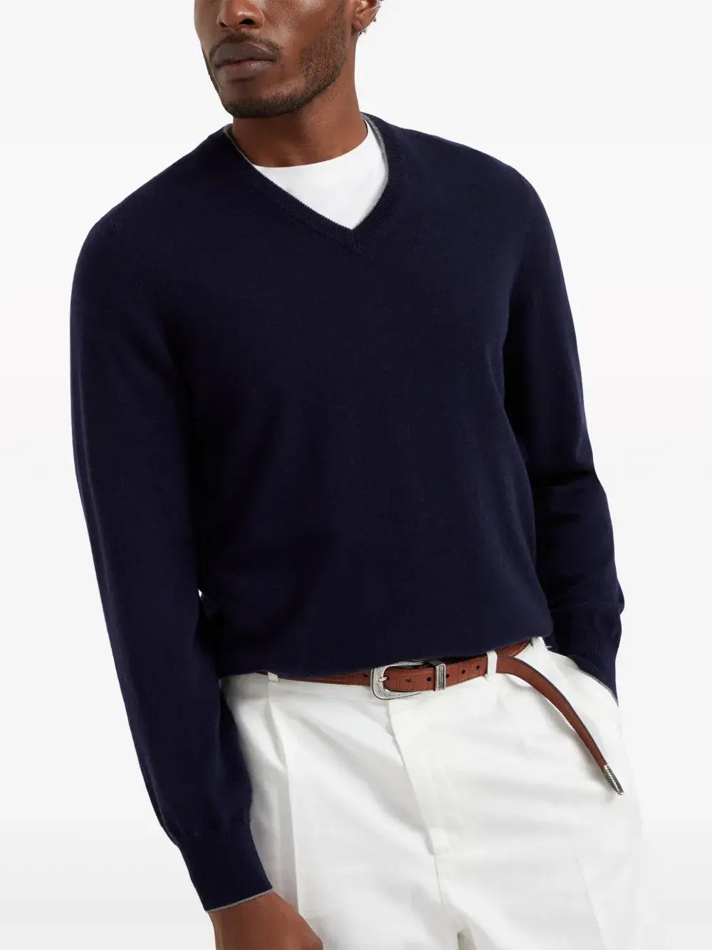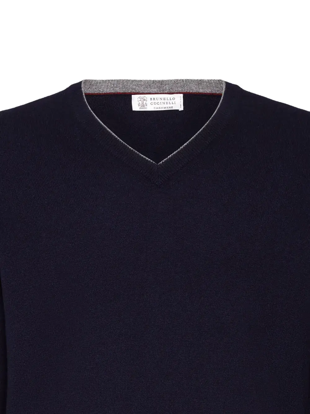 Темно-синий кашемировый джемпер с V-образным вырезом от Brunello Cucinelli(Брунелло Кучинелли).