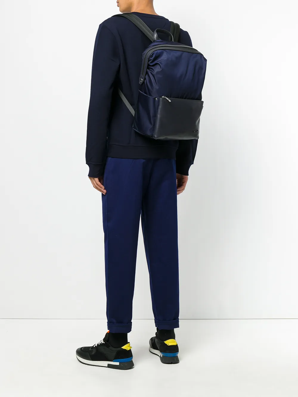 Синий кожаный рюкзак 'Bag Bugs' от Fendi(Фенди). Закругленная ручка, передний отдел на молнии, главный внутренний отдел, лямка на плечо, двухсторонняя молния, боковые карманы.