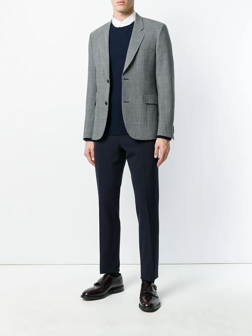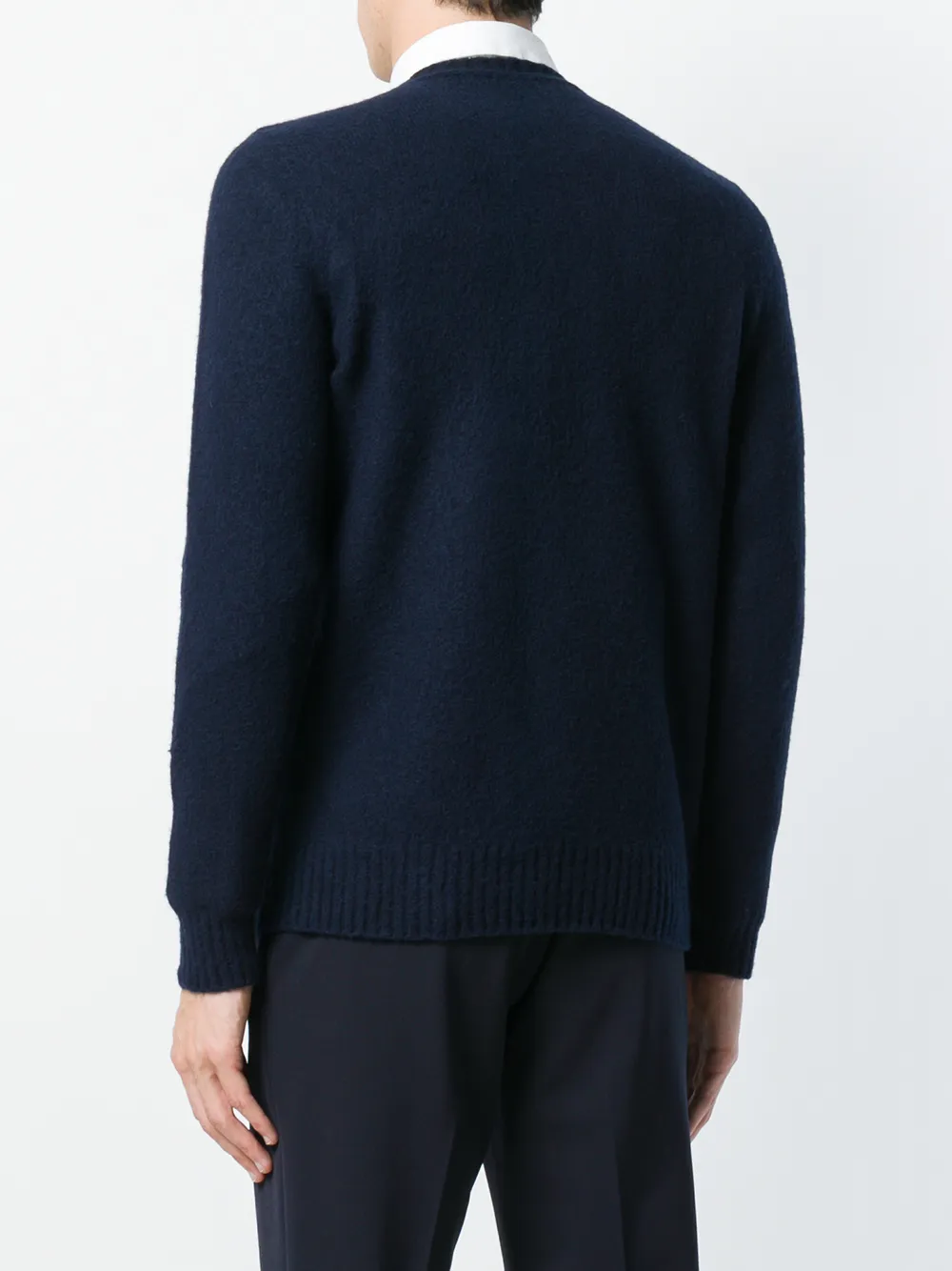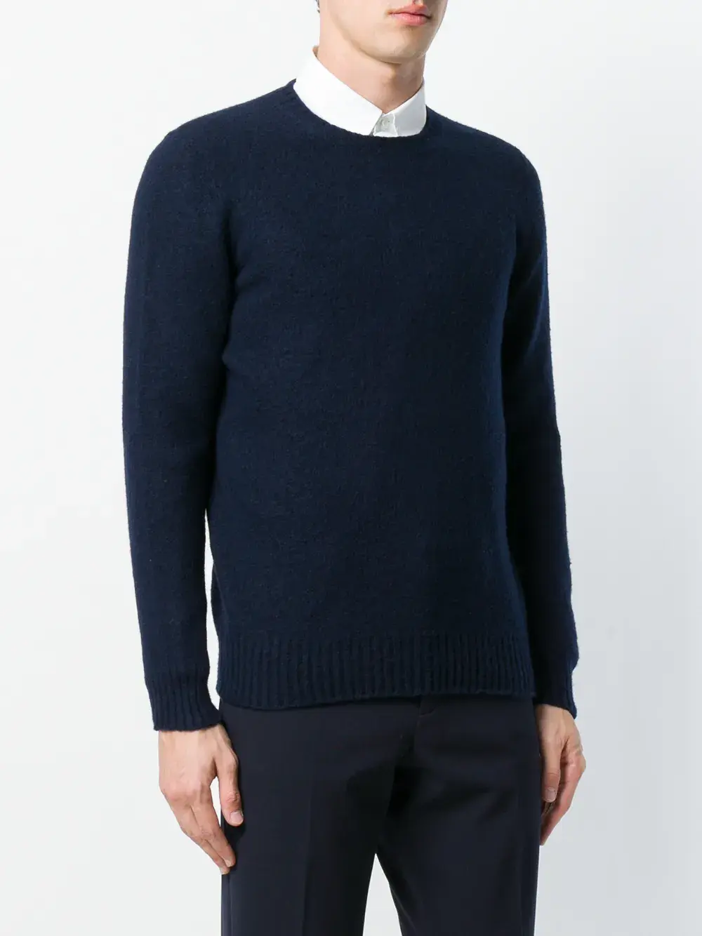 Темно-синий джемпер из шерсти ягненка с круглым вырезом от Drumohr.