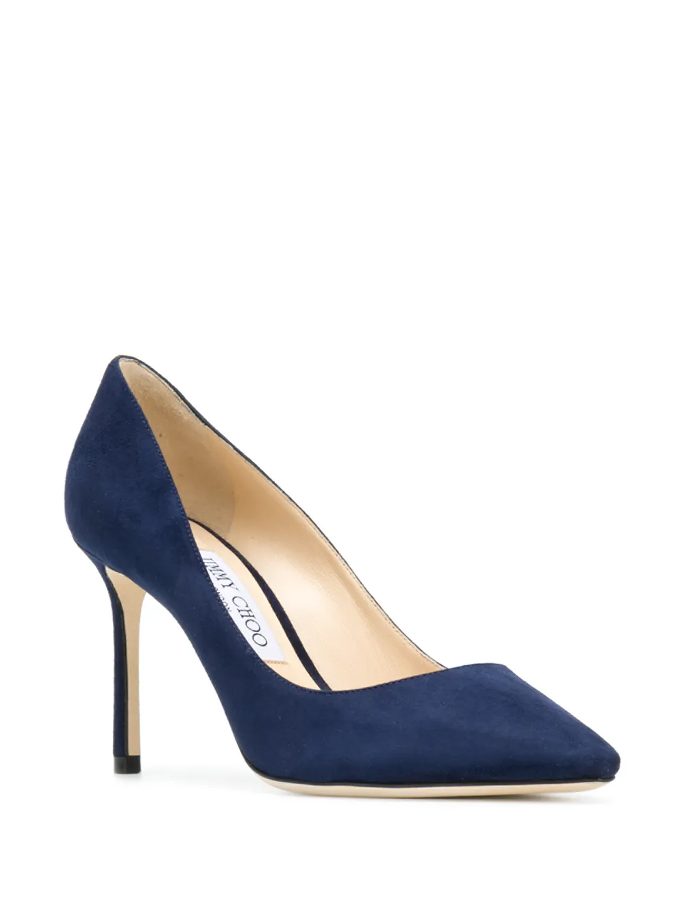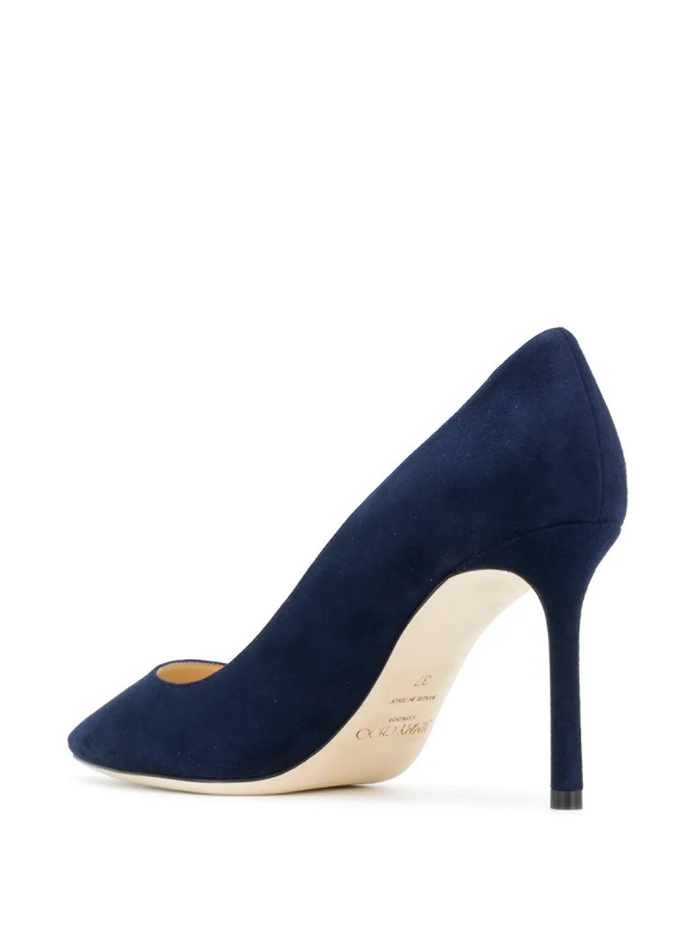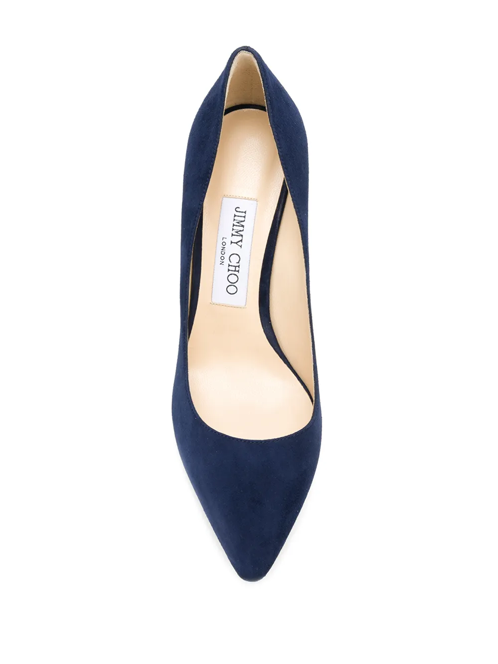 Синие замшевые туфли 'Romy 85' от Jimmy Choo(Джимми Чу). Заостренный носок, фирменная стелька, высокая шпилька.
