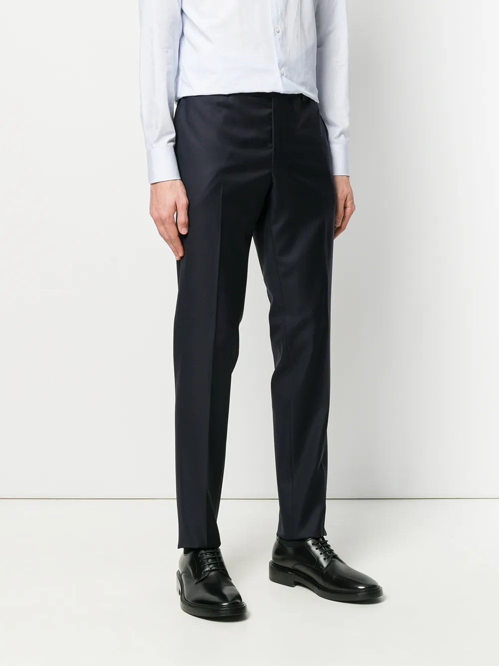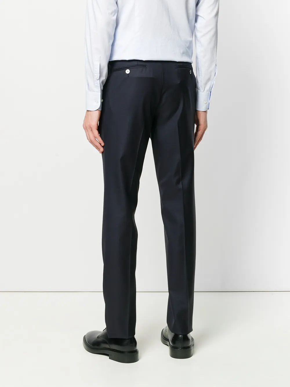 Темно-синие кашемировые прямые брюки от Dell'oglio. Стандартная длина, застежка на пуговице и молнии, пояс с петлями для ремня.