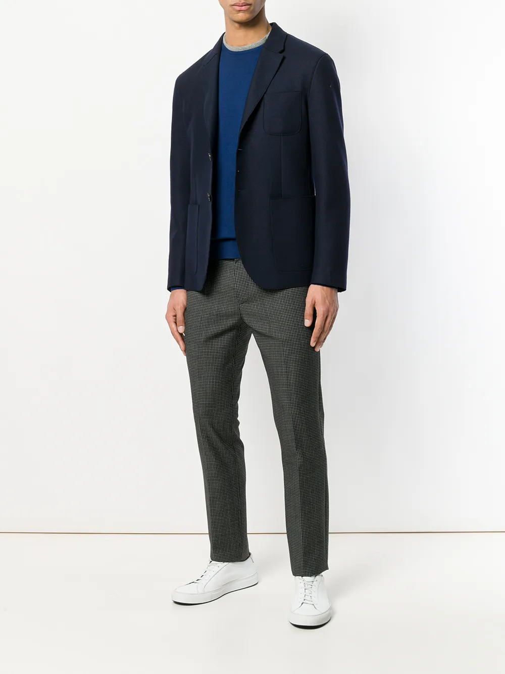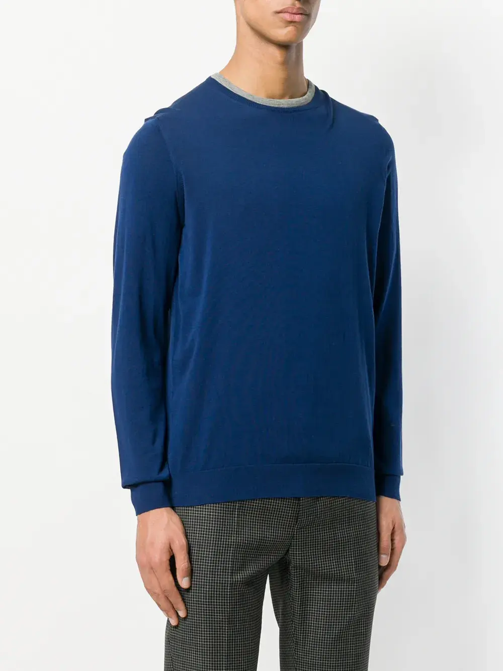 Темно-синий хлопковый свитер с круглым вырезом от Drumohr.