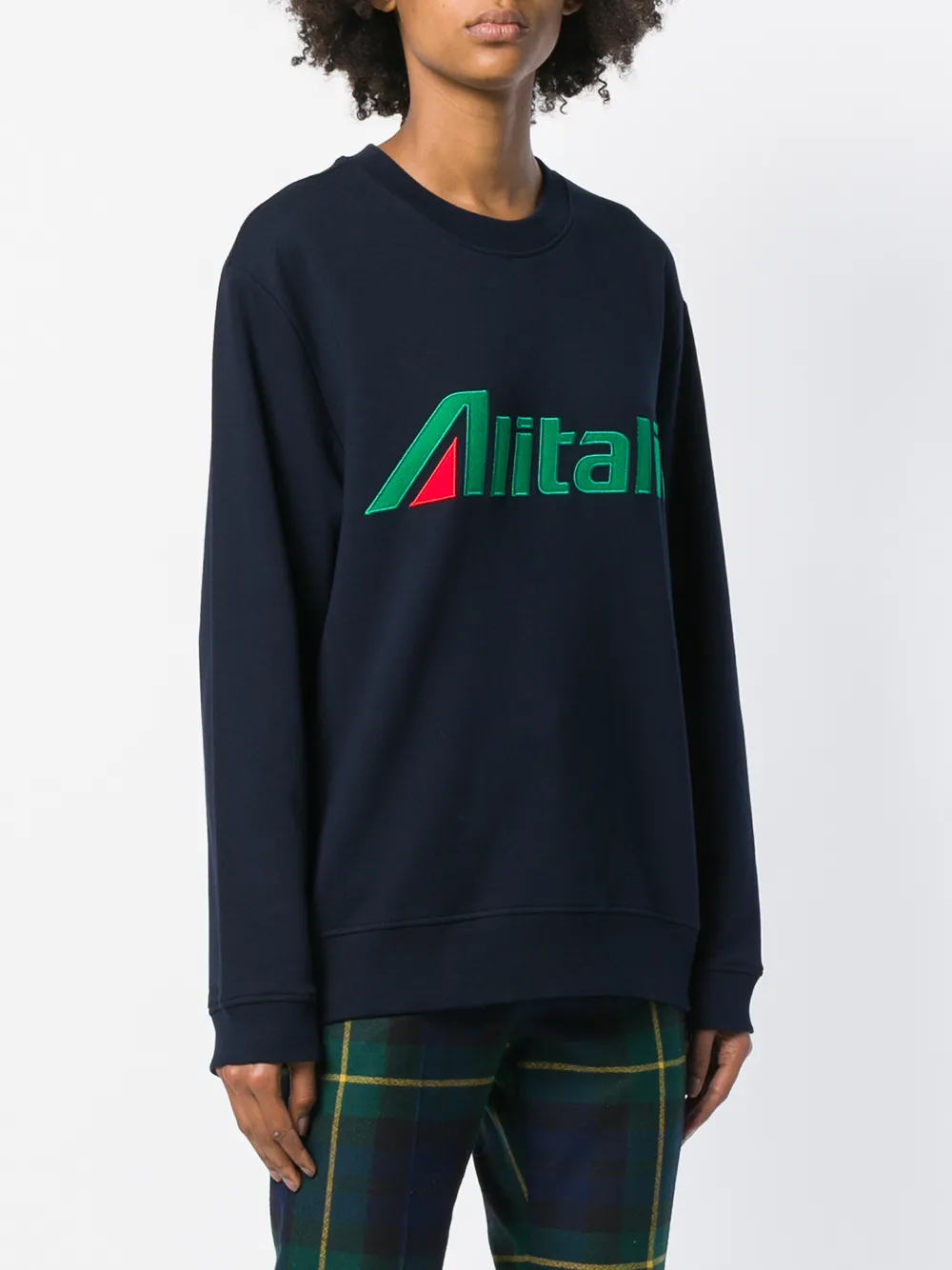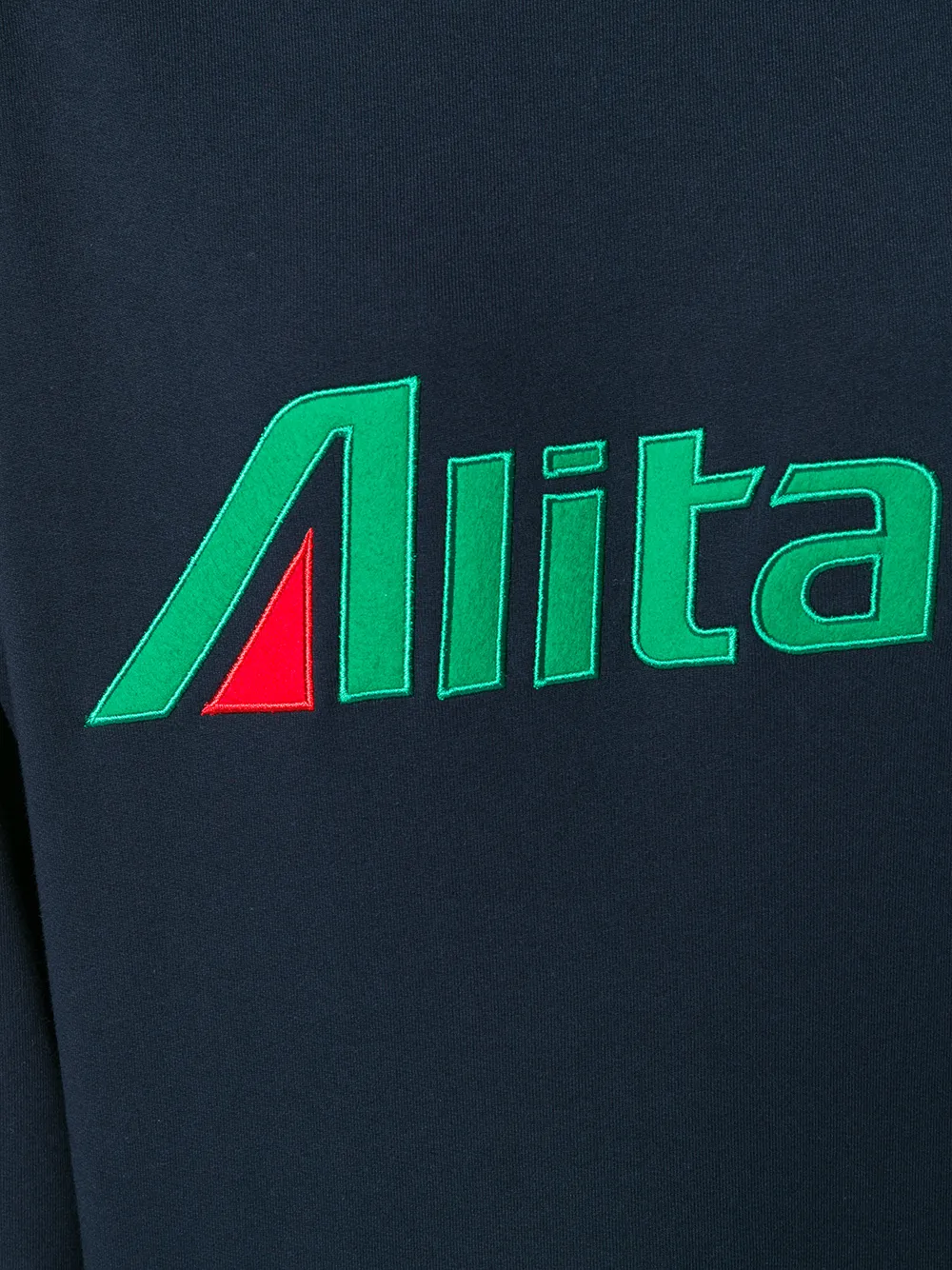 Темно-синяя хлопковая толстовка 'Alitalia' от Alberta Ferretti. Круглый вырез под горло, длинные рукава.