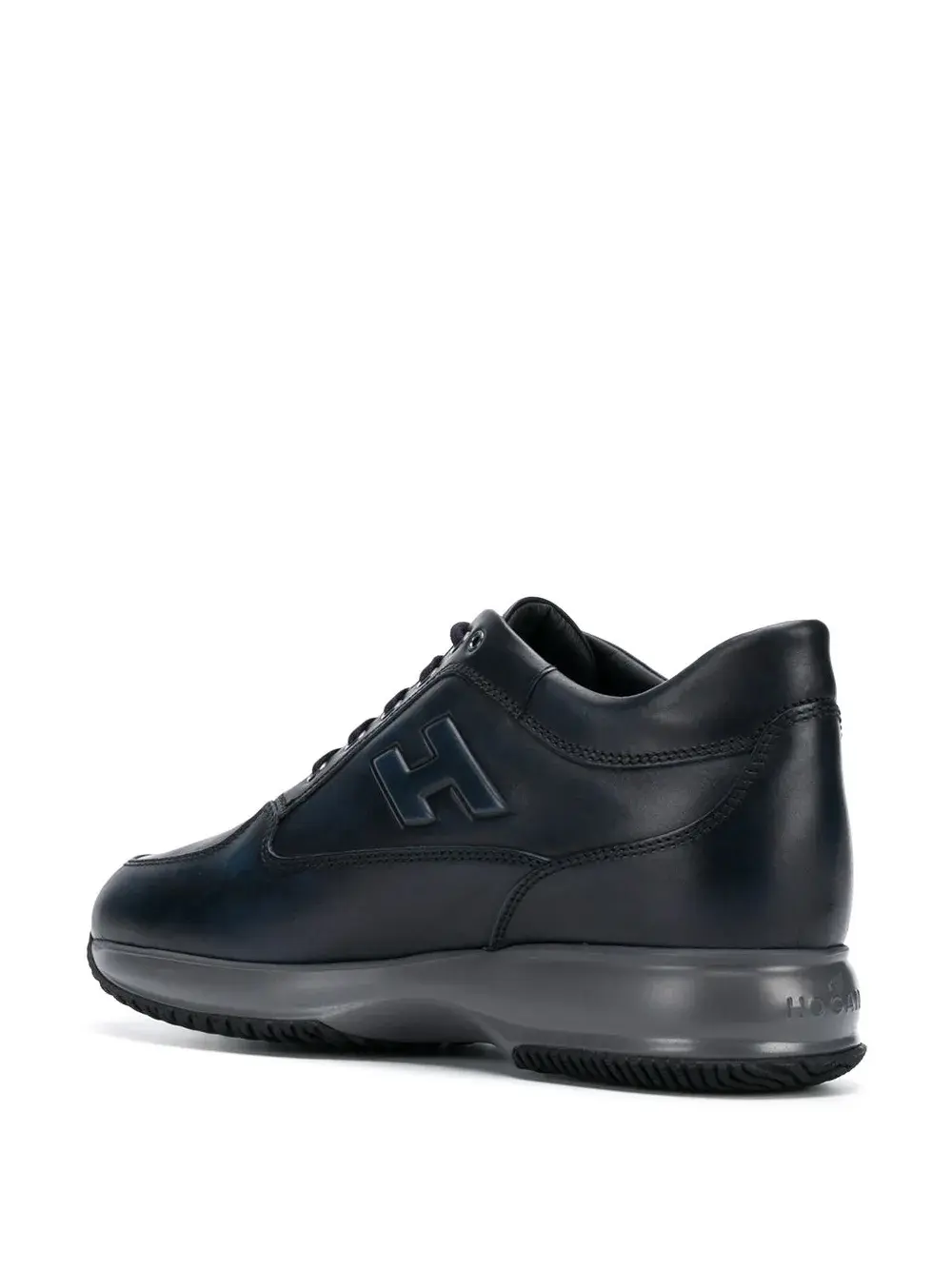 Interactive sneakers от HOGAN. Шнуровка спереди, заплатка с логотипом на язычке и плоская резиновая подошва. Цвет: синий.