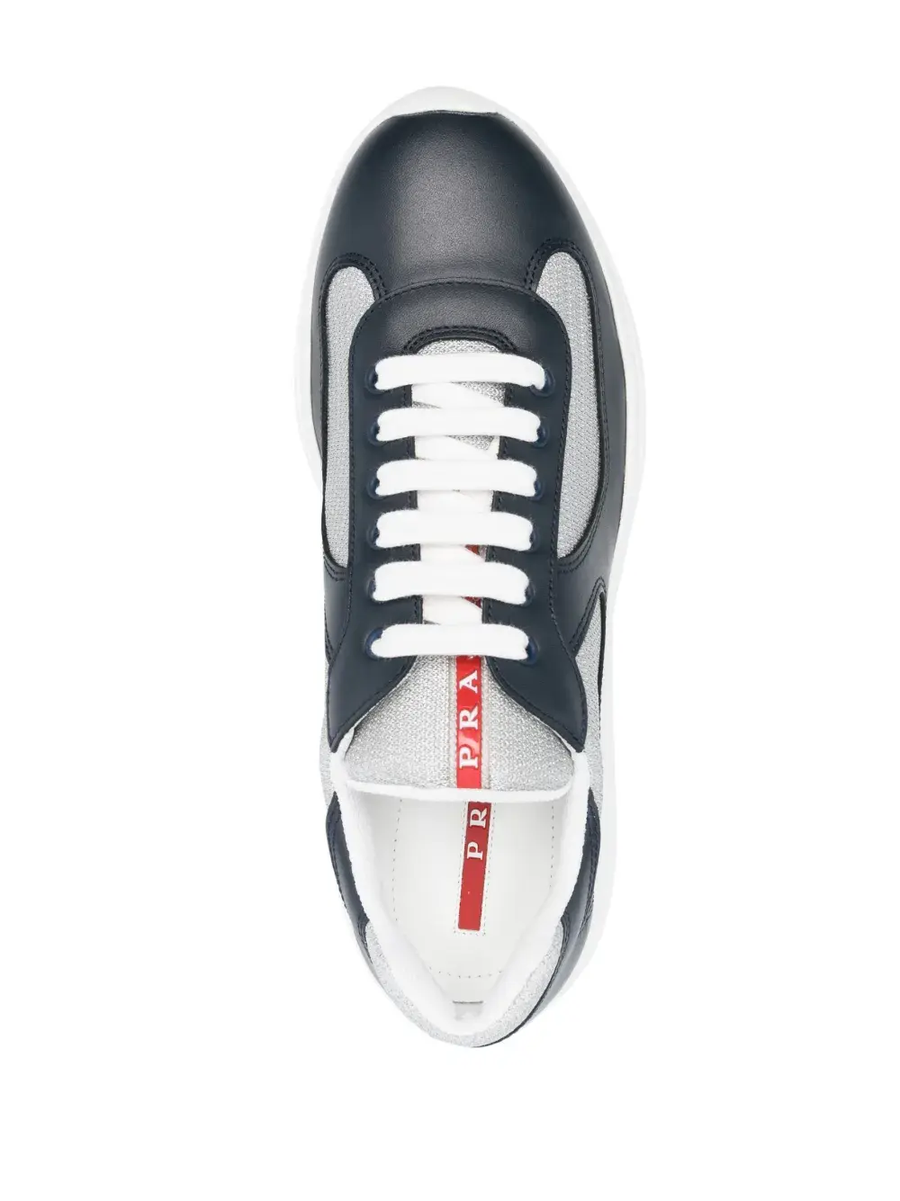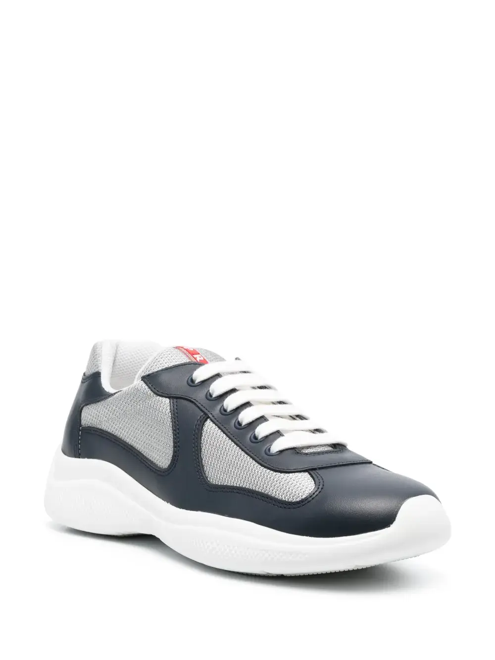 Современный и динамичный бренд Prada (Прада) за долгие годы успел собрать множество поклонников и последователей. Особой популярностью пользуются аксессуары. Среди них можно найти кожаные кроссовки Americas Cup со вставками серого и черного цвета. Особенности модели: шнуровка спереди, нашивка-логотип на язычке, закругленный носок, контрастные вставки и плоская резиновая подошва. Сделано в Италии.