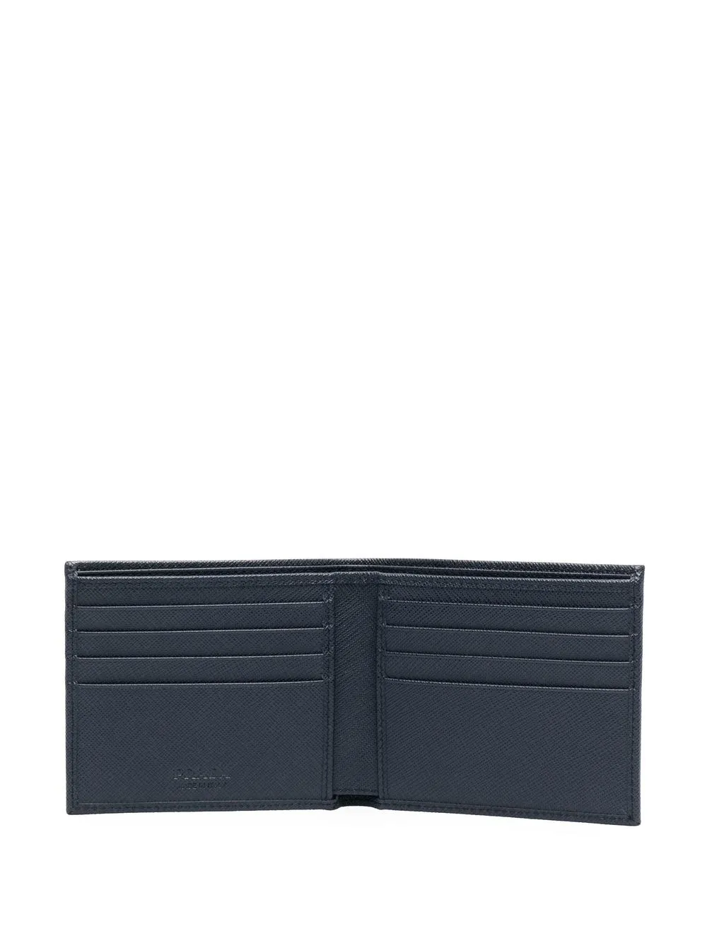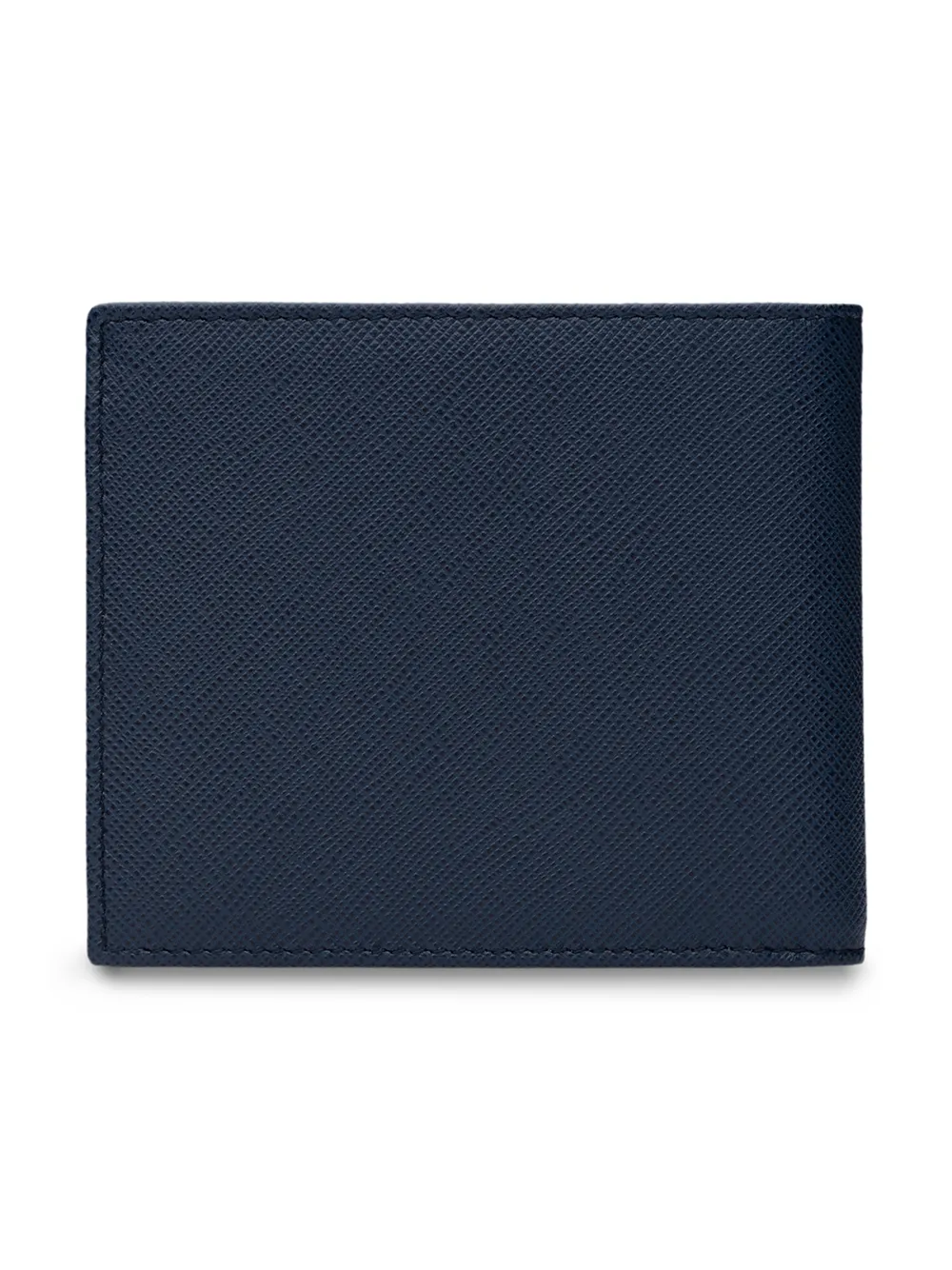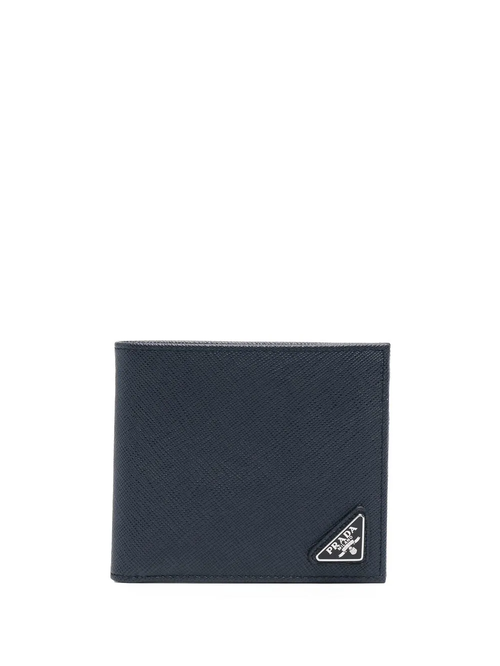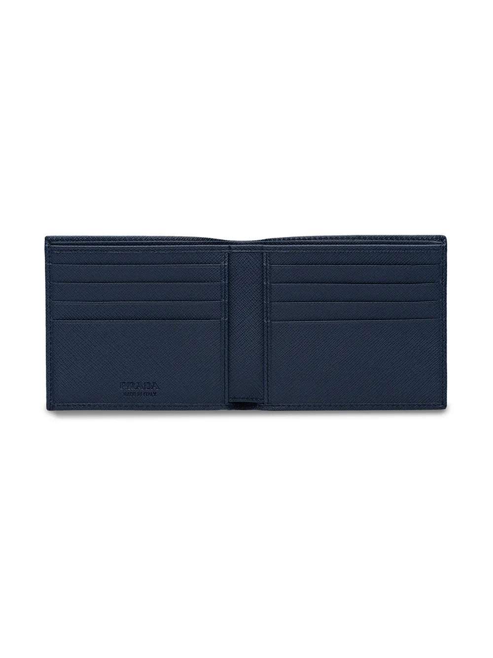 Кошелек из кожи Saffiano от Prada (Прада). Бляшка с логотипом спереди, multiple interior card slots, внутренние прорезные карманы и отделение для купюр. Цвет: синий.