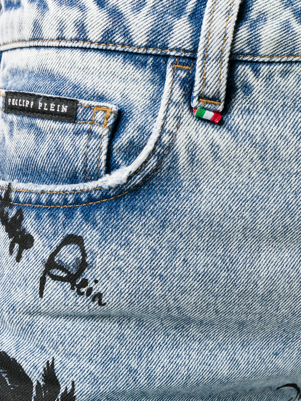 Джинсы бойфренды с принтом Philipp Plein, синий