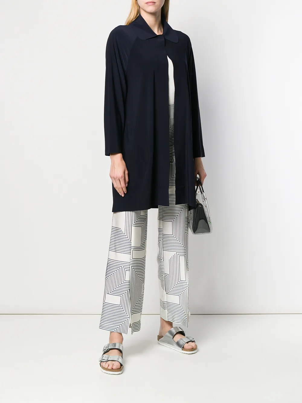 Кардиган без застежки от Norma Kamali. Стоячий воротник, открытый перед, длинные рукава, удлиненная модель и прямой подол.