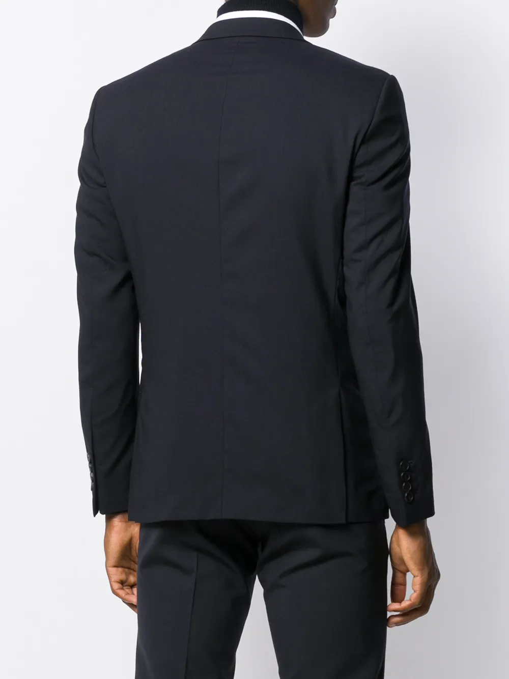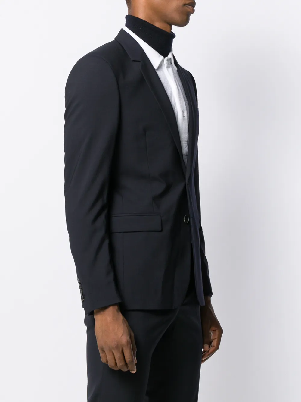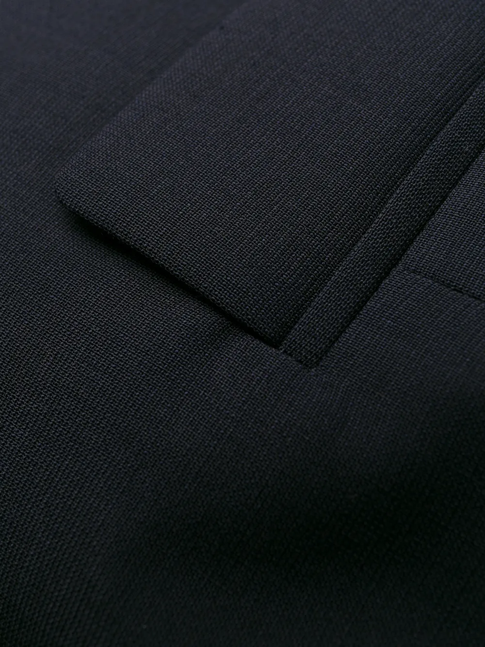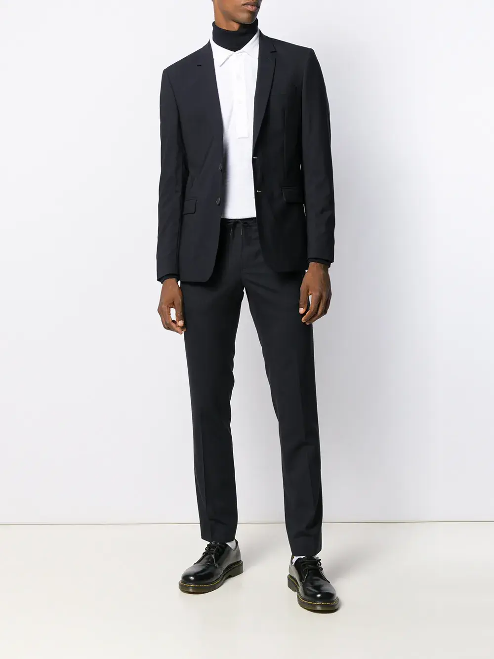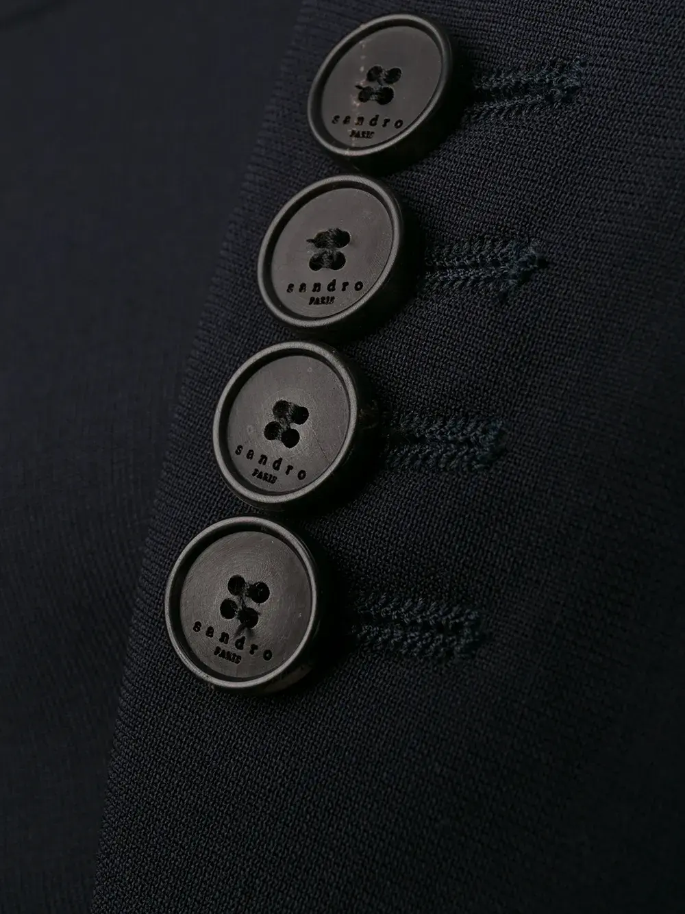 Костюм-двойка от Sandro Paris. Зазубренные лацканы, нагрудный карман, длинные рукава, манжеты на пуговицах, застежка на пуговицах спереди, боковые карманы, средняя посадка, эластичный пояс, боковые карманы, задние карманы и стандартная длина.