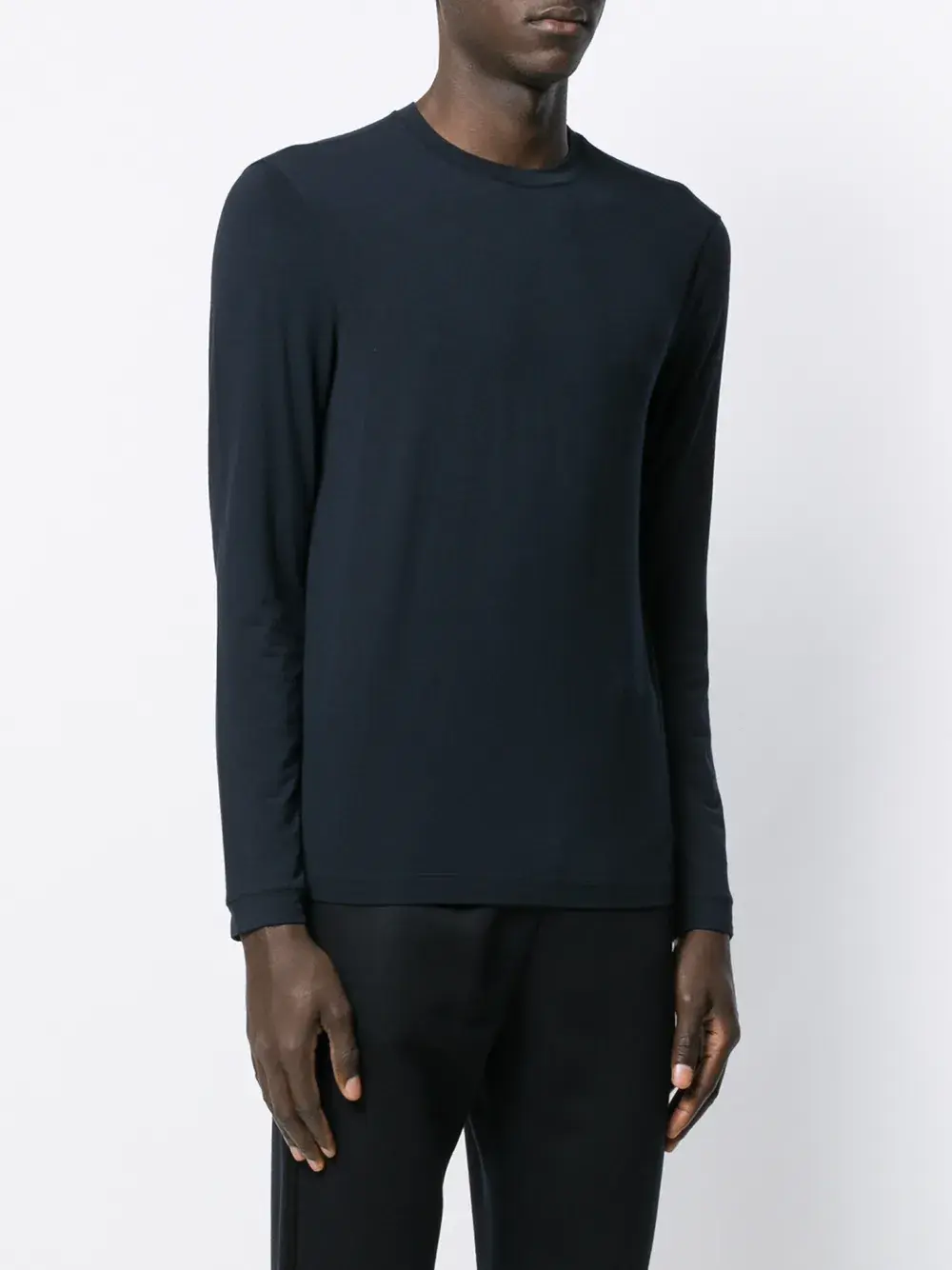 Толстовка из джерси от Giorgio Armani (Джорджо Армани). Круглый вырез, длинные рукава, свободный крой и манжеты в рубчик.