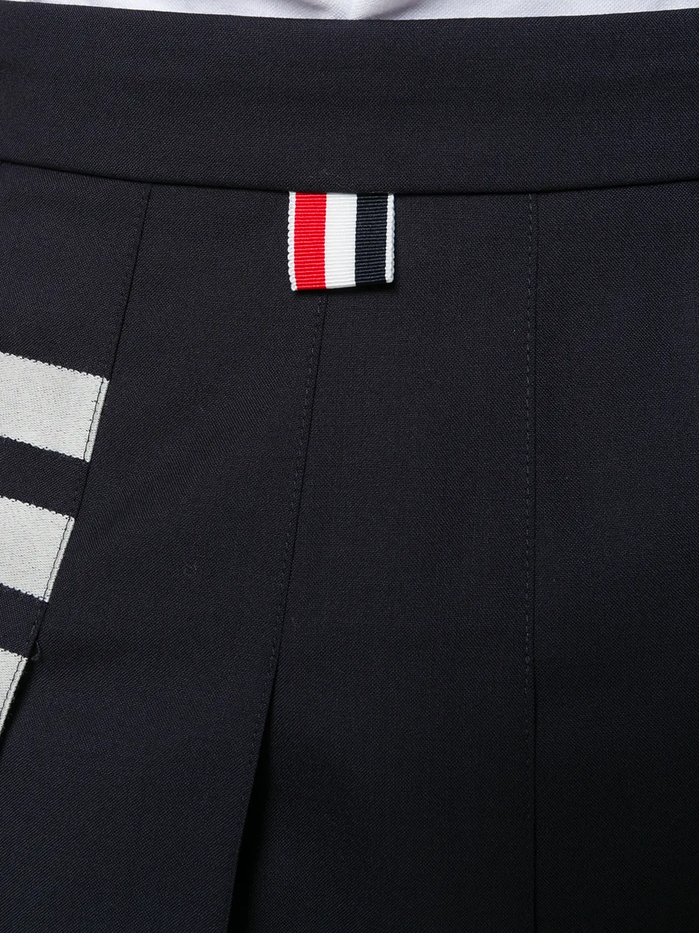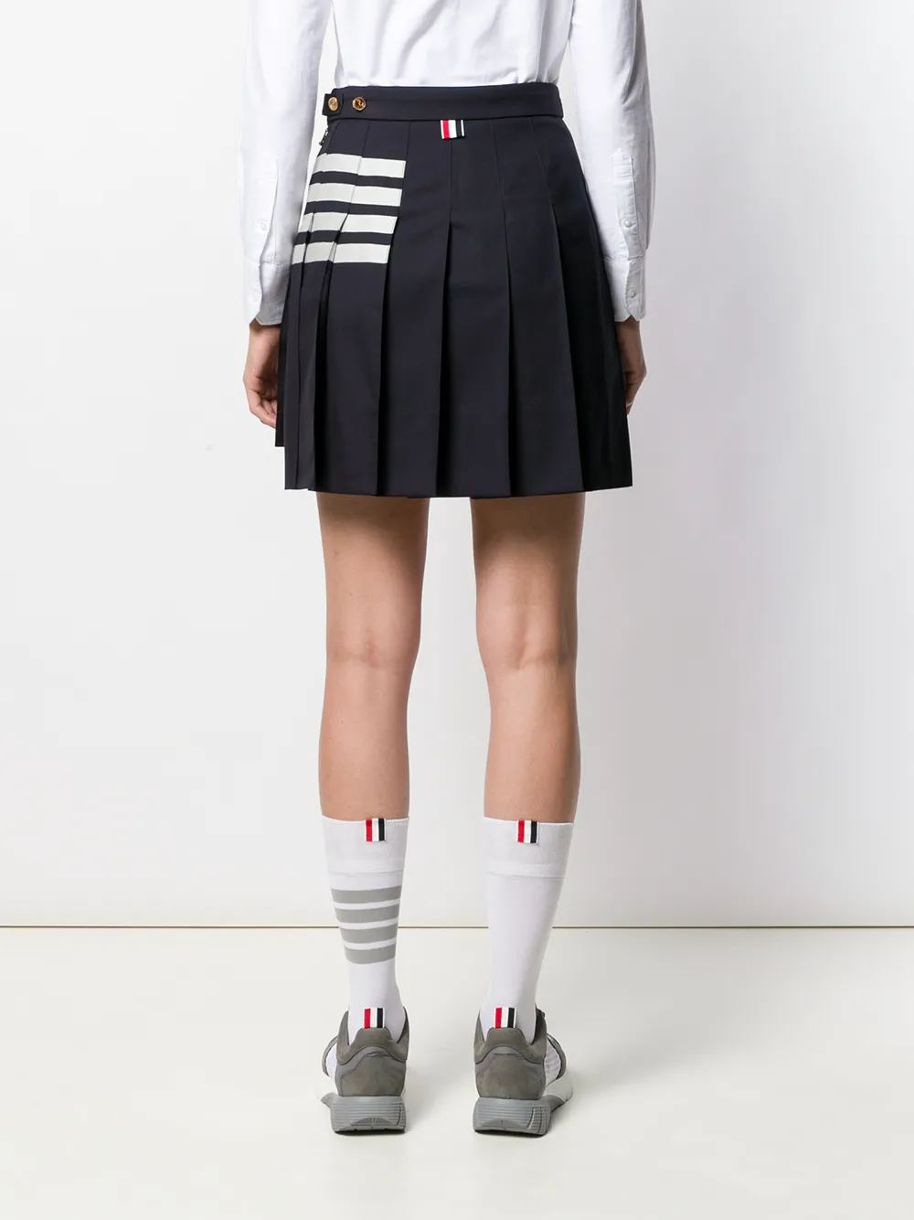 Плиссированная юбка мини с полосками 4-Bar от Thom Browne (Том Браун). Завышенная талия, боковая застежка на пряжке, плиссированный дизайн, полосатый узор и короткая длина.