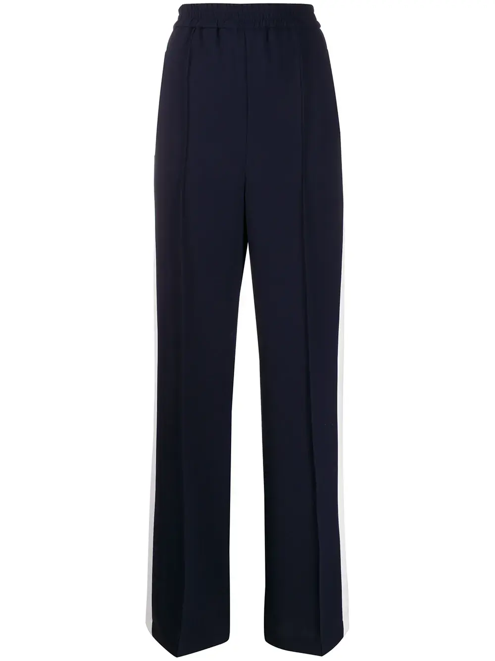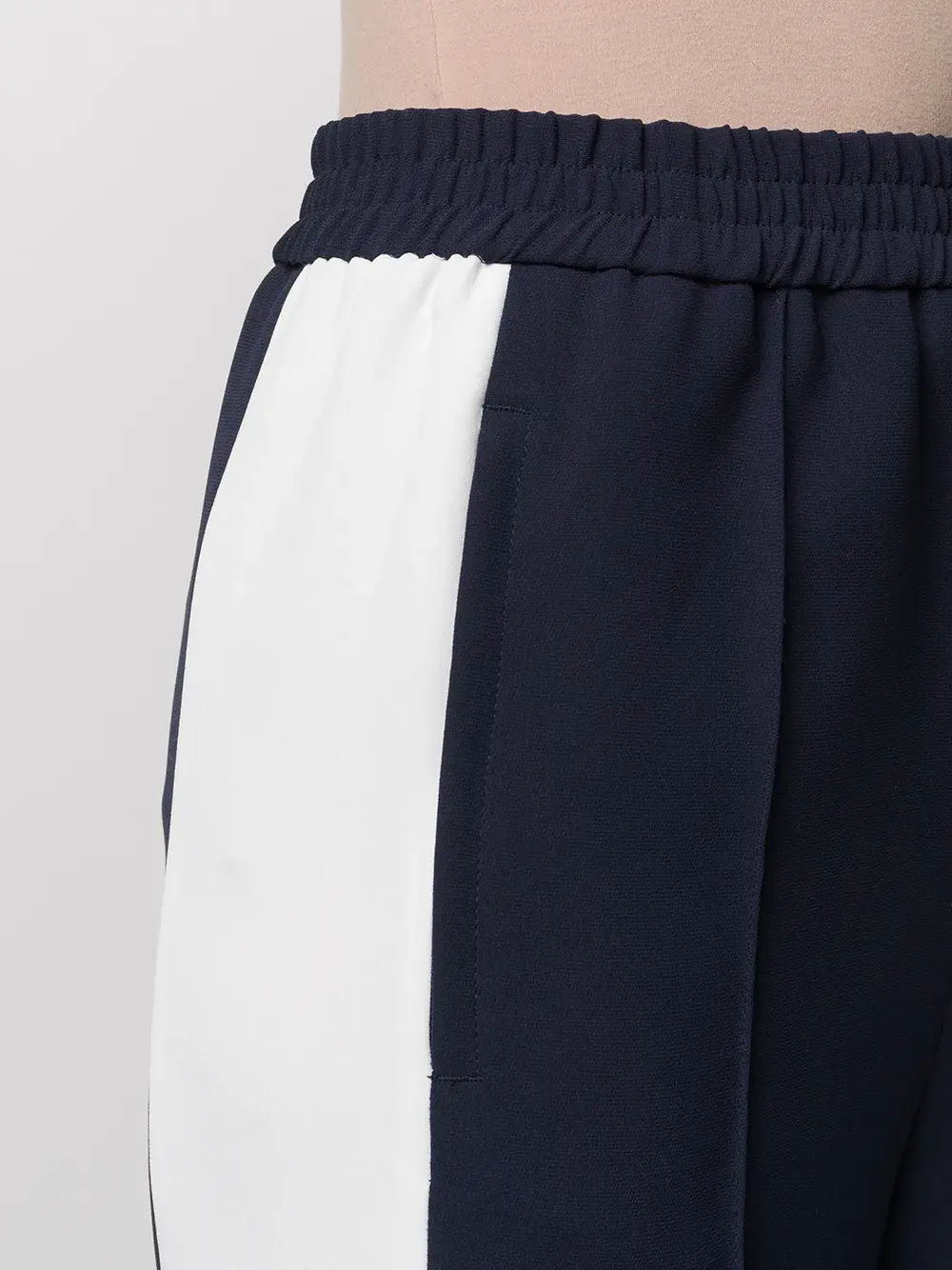 Спортивные брюки с лампасами от MSGM. Эластичный пояс, передняя встречная складка и аппликационные полоски по бокам.