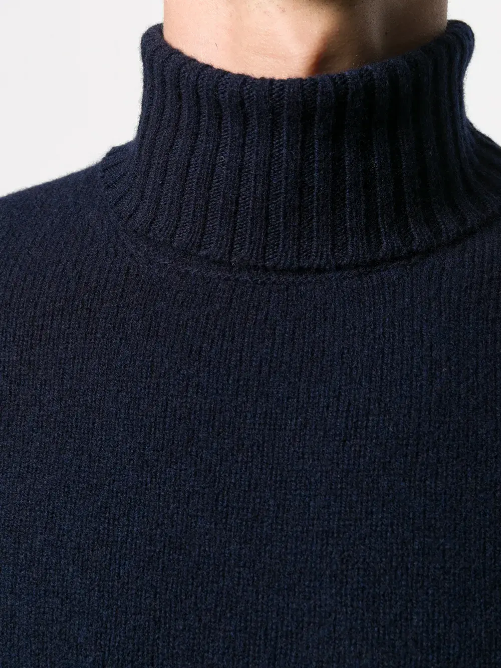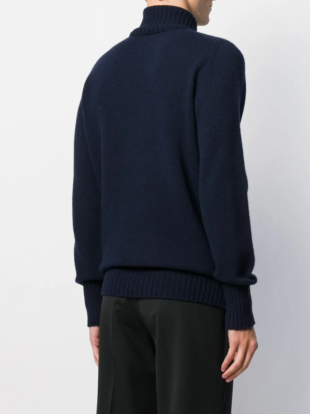 Джемпер с высоким воротником от Drumohr. Тонкая вязка, высокое горлышко с заворотом, длинные рукава, подол и манжеты в рубчик и прямой крой.