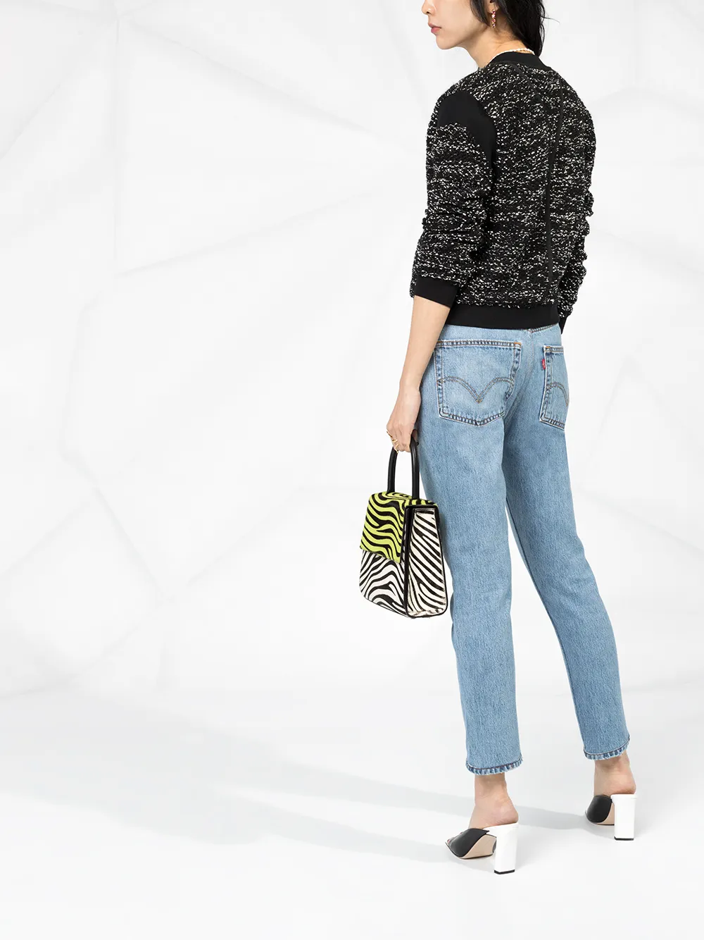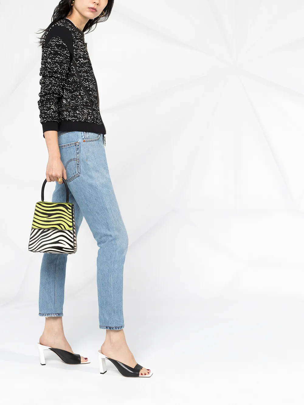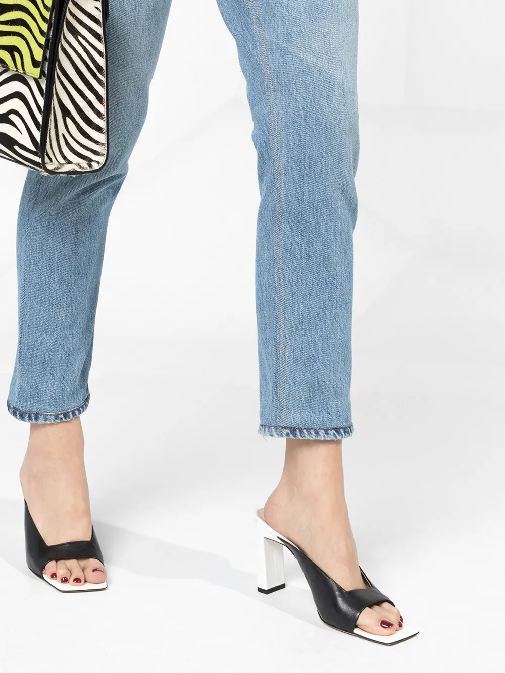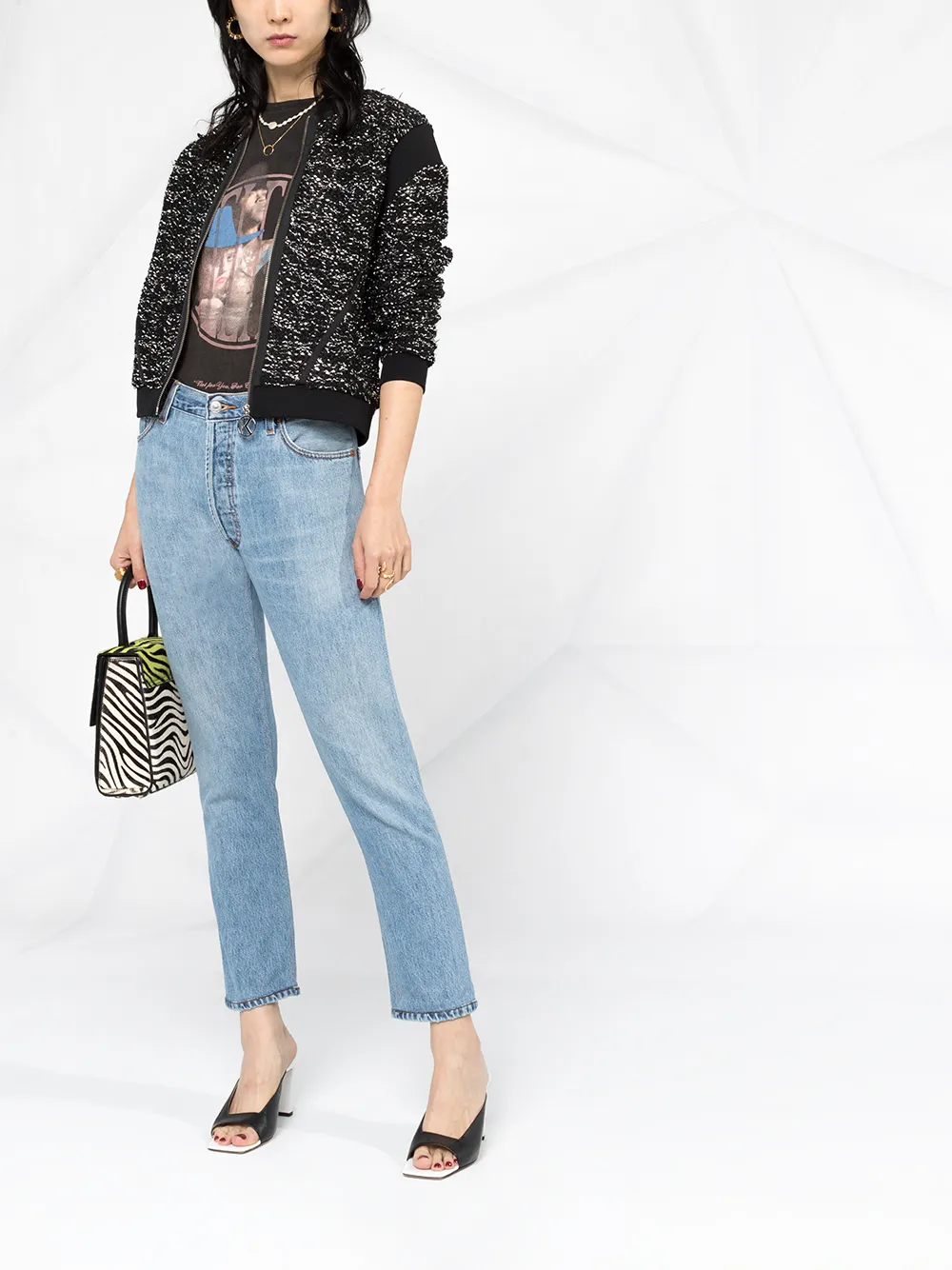 Укороченные джинсы с завышенной талией от Re/Done. Ширинка на молнии с пуговицей, пояс на талии, классическая пятикарманная модель и узкий крой.