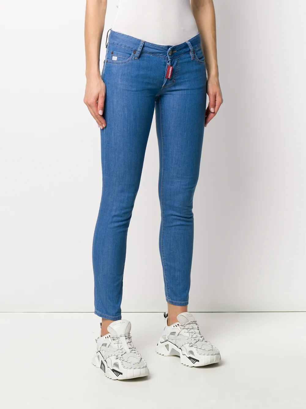Джинсы скинни Jennifer от Dsquared2 (Дискуэд). Низкая посадка, пояс с петлями для ремня, застежка на пуговицах спереди, классическая пятикарманная модель и укороченная длина. Цвет: синий.