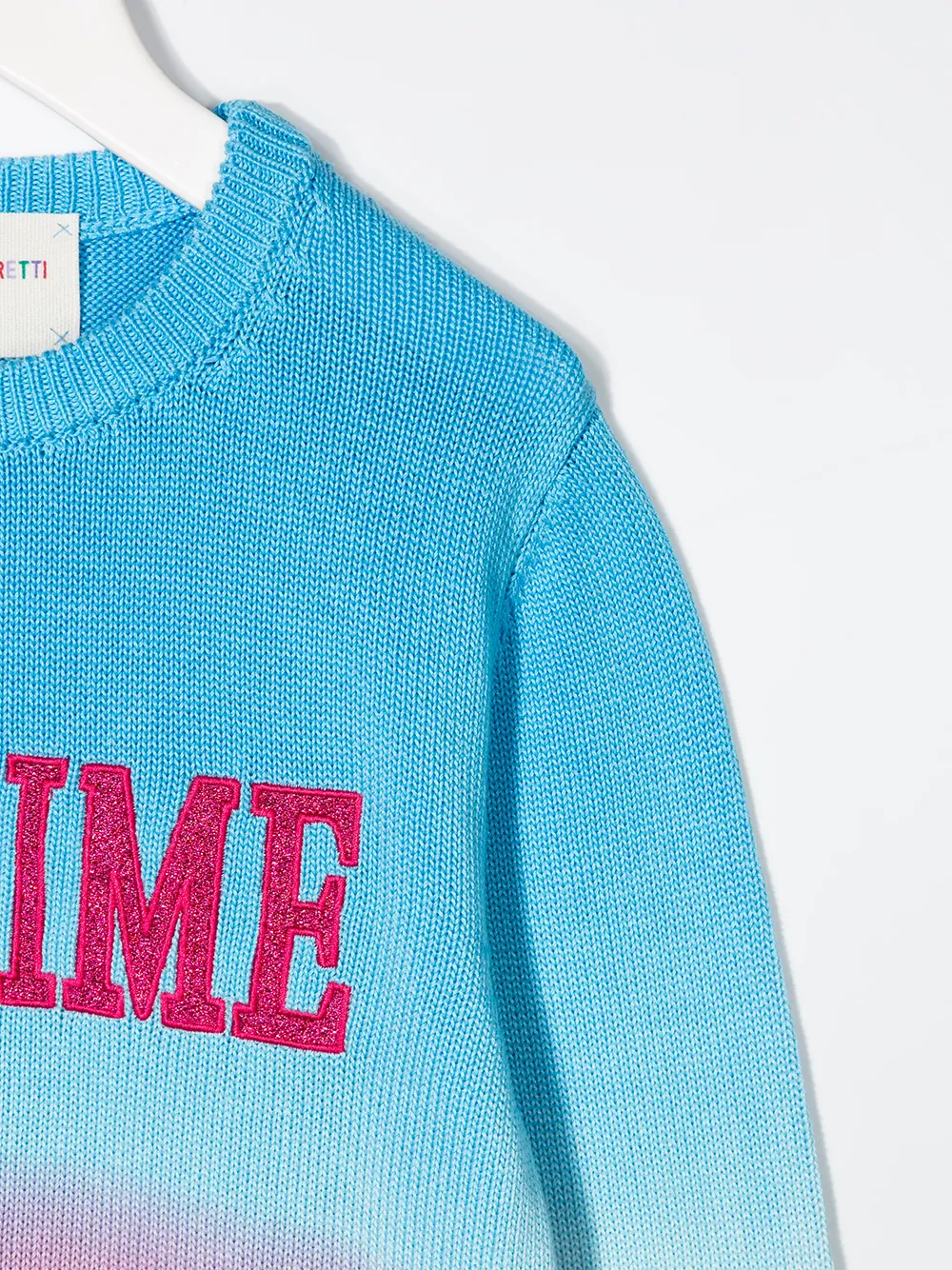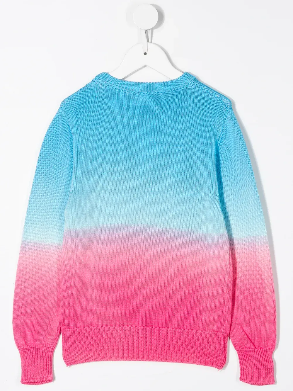 Джемпер Je T'aime от Alberta Ferretti Kids. Свободный крой, тонально-градиентный эффект, круглый вырез, длинные рукава и подол и манжеты в рубчик. Цвет: синий.