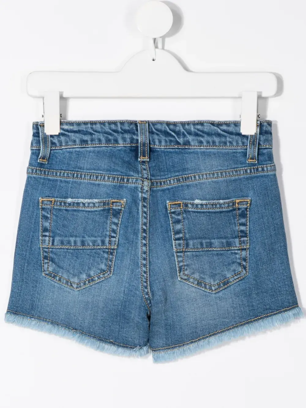 Джинсовые шорты с логотипом от GCDS kids. Необработанные края, принт с логотипом спереди, пояс с петлями для ремня, ширинка на молнии с пуговицей и классическая пятикарманная модель.