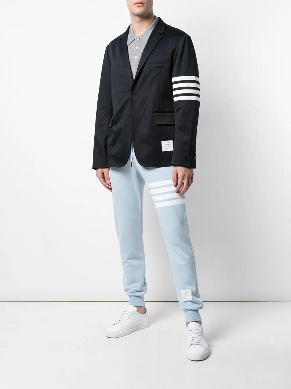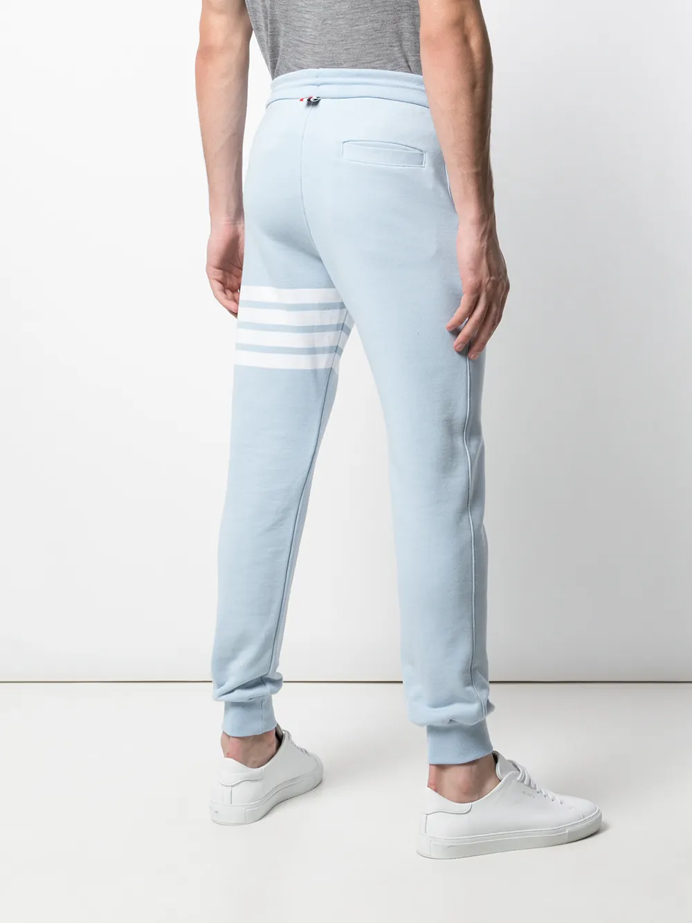 Спортивные брюки с полосками 4-Bar от Thom Browne. Эластичный пояс со шнурком, боковые карманы, задние карманы и стандартная длина.