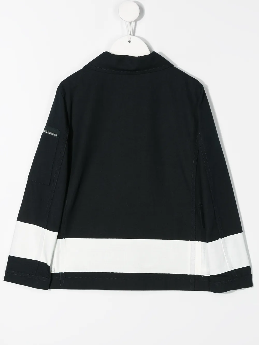 Пальто с полосками от Fay Kids. Классический воротник, застежка на крючок, длинные рукава, боковые карманы и прямой подол.