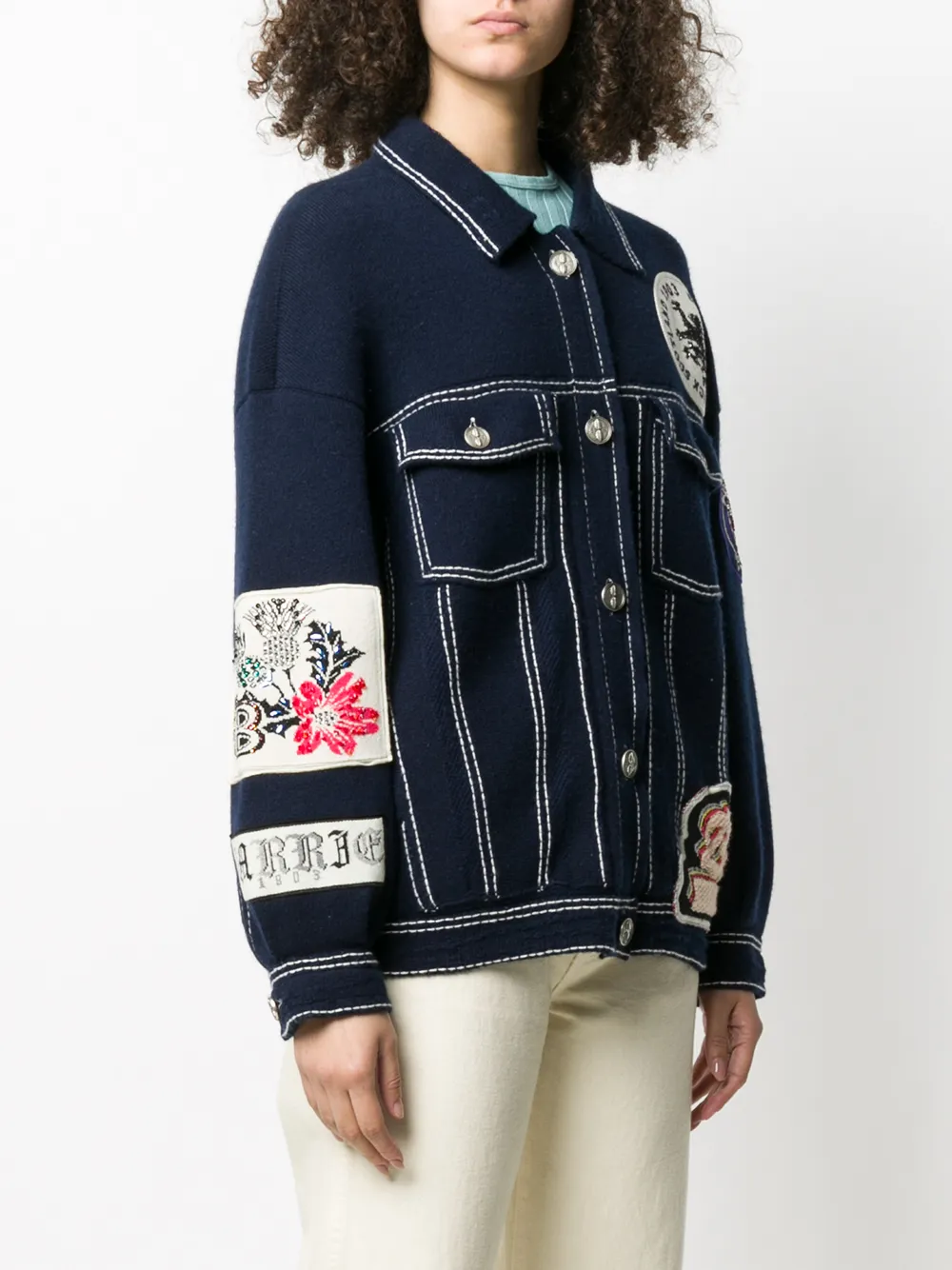 Вязаный жакет с нашивкой от Barrie. Классический воротник, застежка на пуговицах спереди, два нагрудных кармана, длинные рукава, дизайн с аппликацией и прямой подол.
