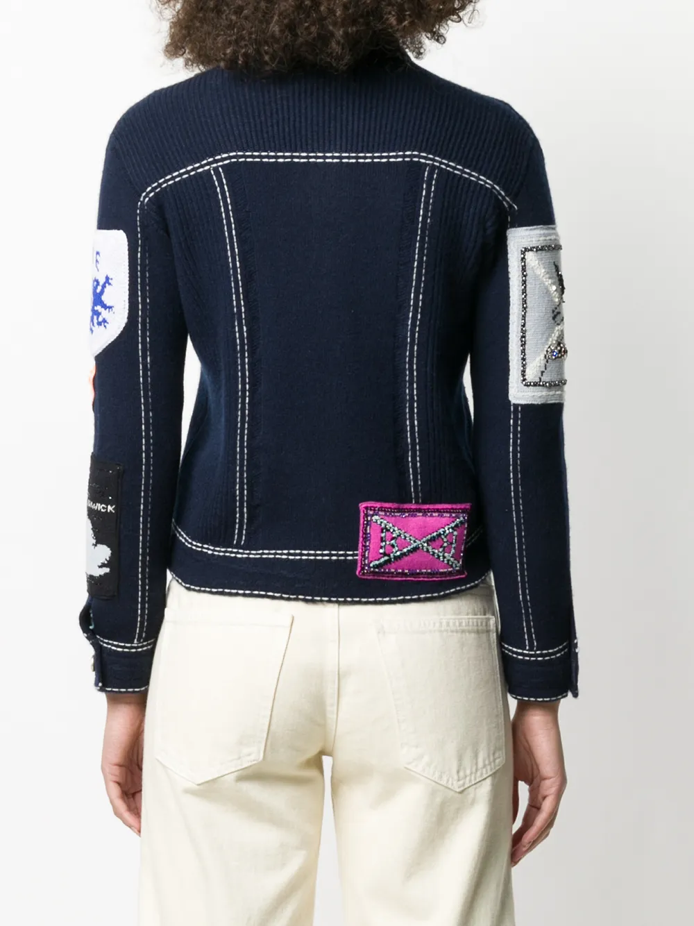 Вязаный жакет с нашивкой от Barrie. Классический воротник, застежка на пуговицах спереди, деталь с ребристой вязкой, два нагрудных кармана, длинные рукава и прямой подол.