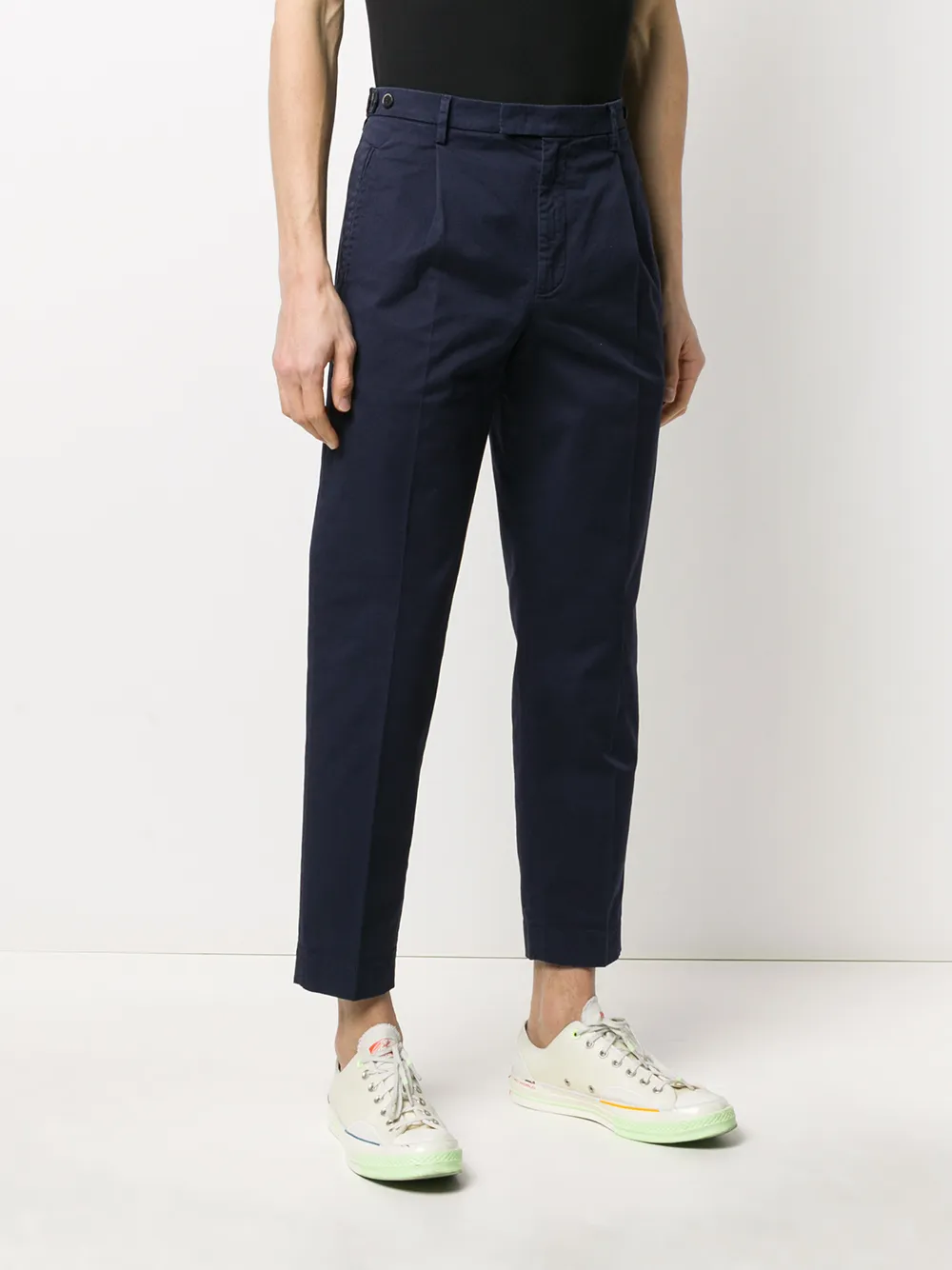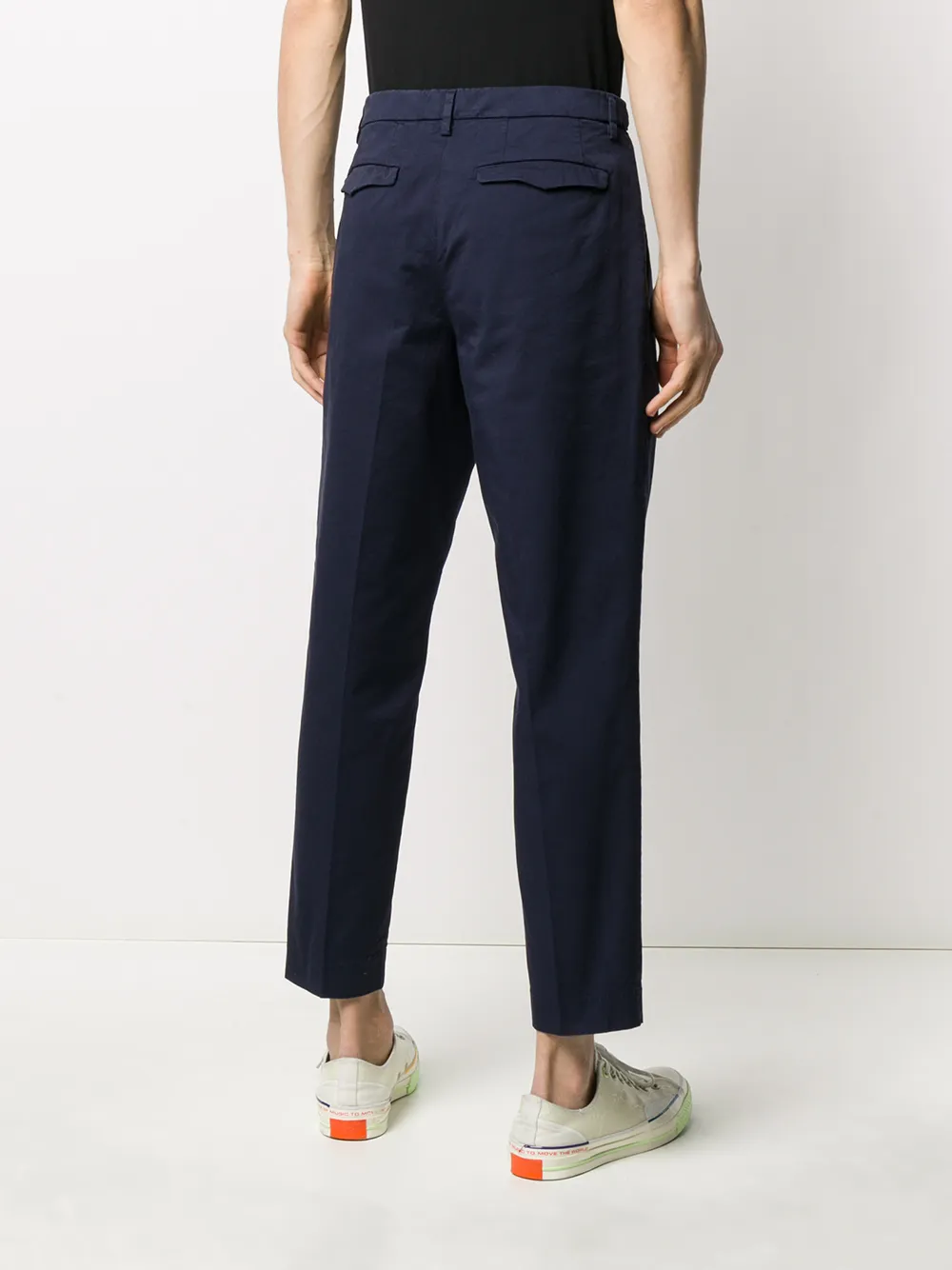 Зауженные брюки от Barena. Пояс с петлями для ремня, боковые карманы по шву, потайная застежка спереди, сужающиеся к низу брючины и обрезанная длина.