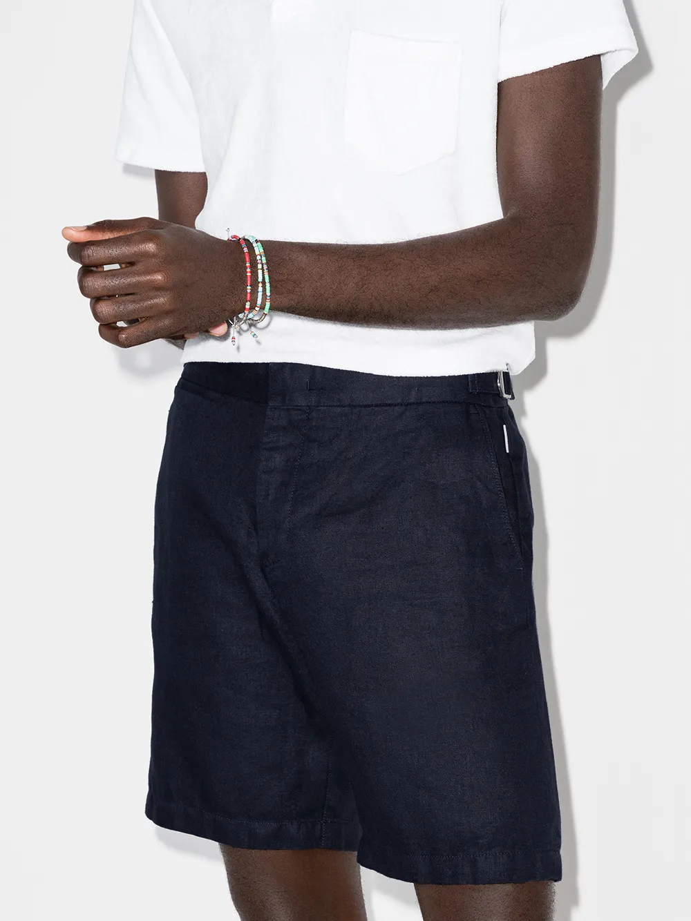 Шорты-бермуды Norwich от Orlebar Brown. Средняя посадка, регулируемые лямки, потайная застежка и боковые карманы. POSITIVELY CONSCIOUS: Как минимум 50% основного материала, из которого сделан этот товар, отвечает нашим критериям экологичности. В состав входят органические или переработанные материалы и ткани, которые признаны более экологичными (лен, рами, тенсел и т.д.)