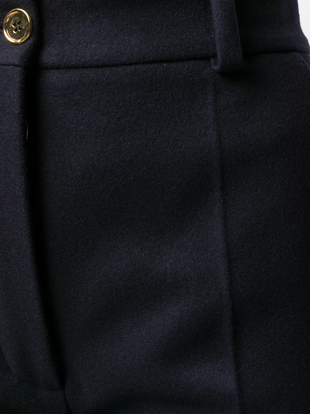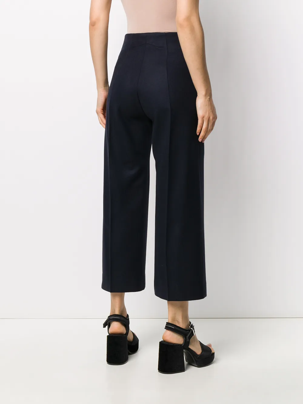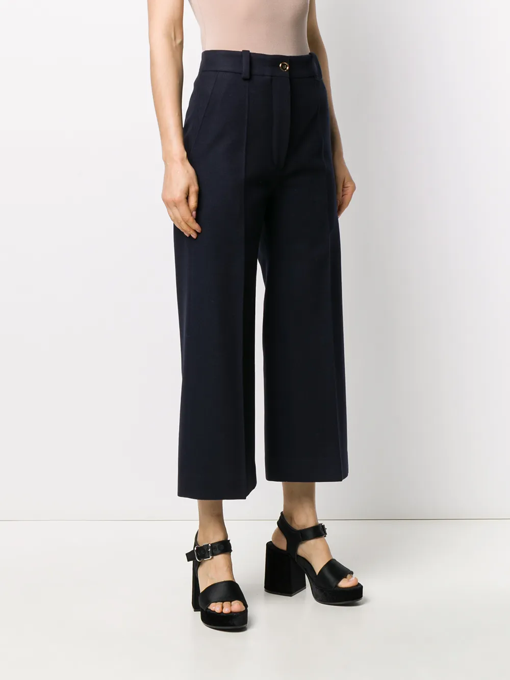 Укороченные брюки строгого кроя от Patou. Пояс с петлями для ремня, ширинка на молнии с пуговицей и прямые брючины.