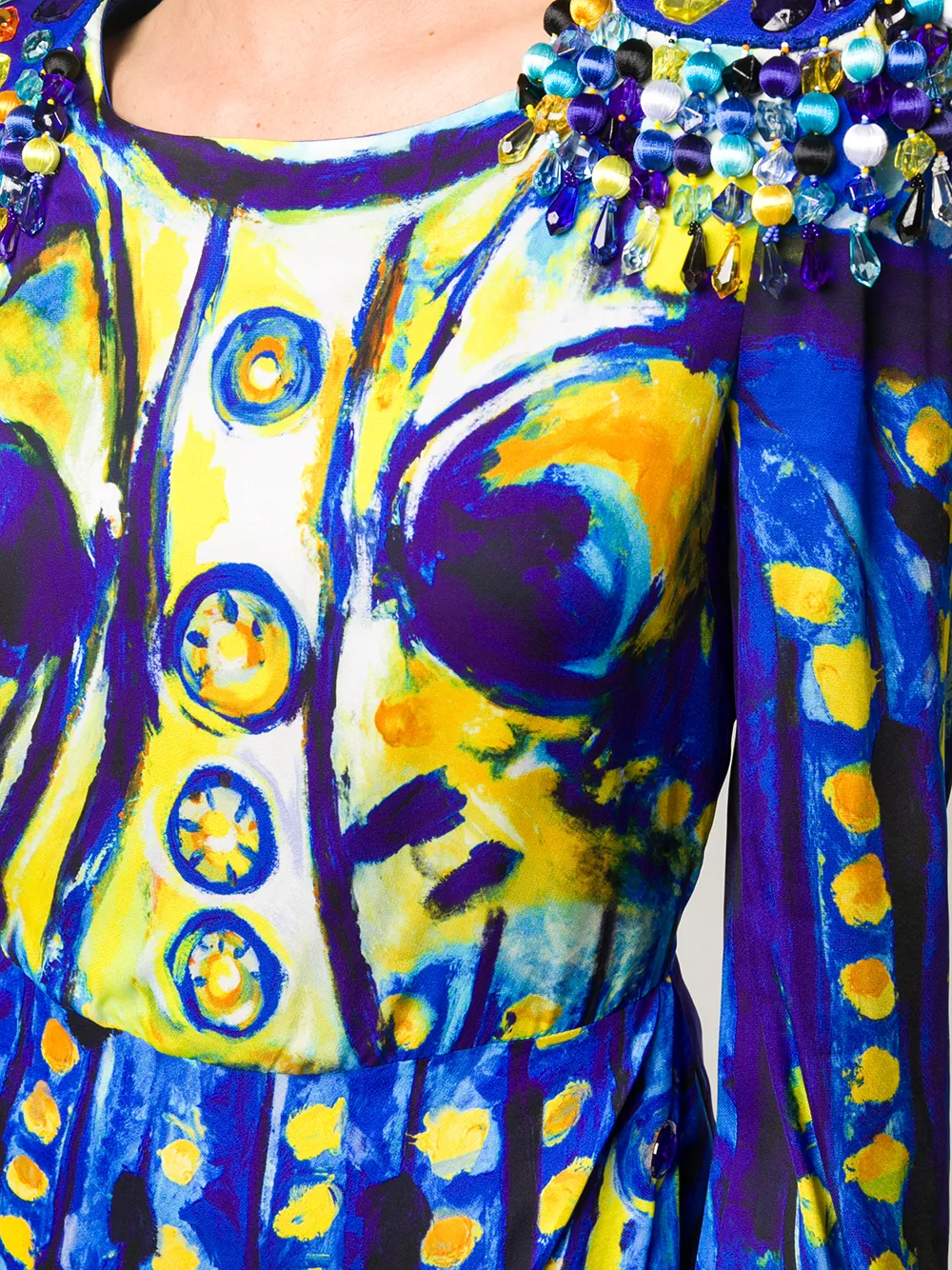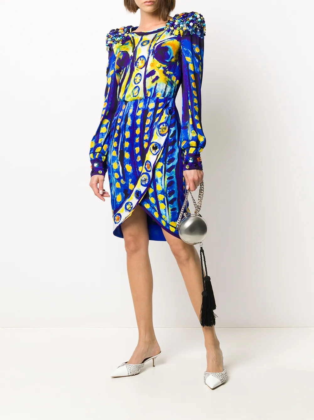 Круглый вырез, длинные рукава и юбка-тюльпан. Цвет: синий.