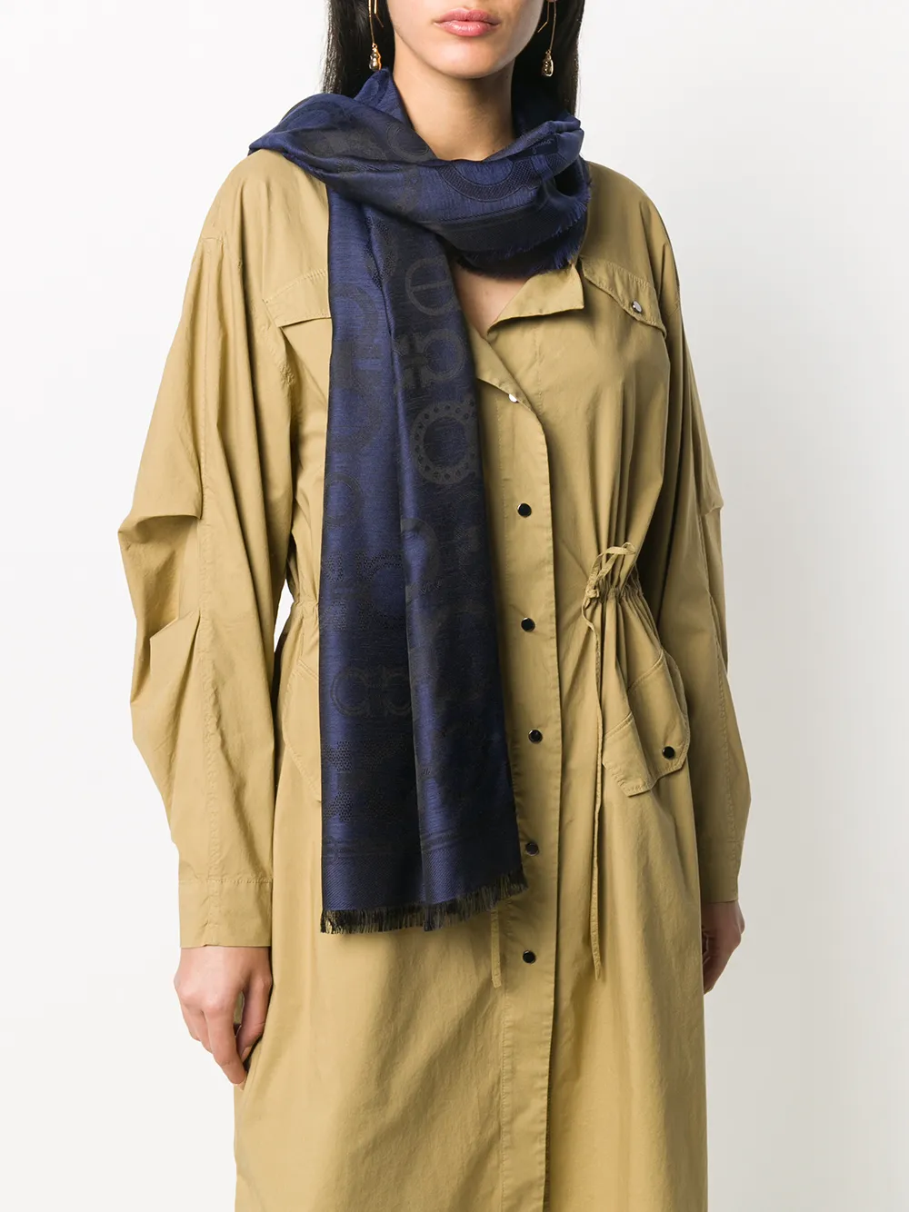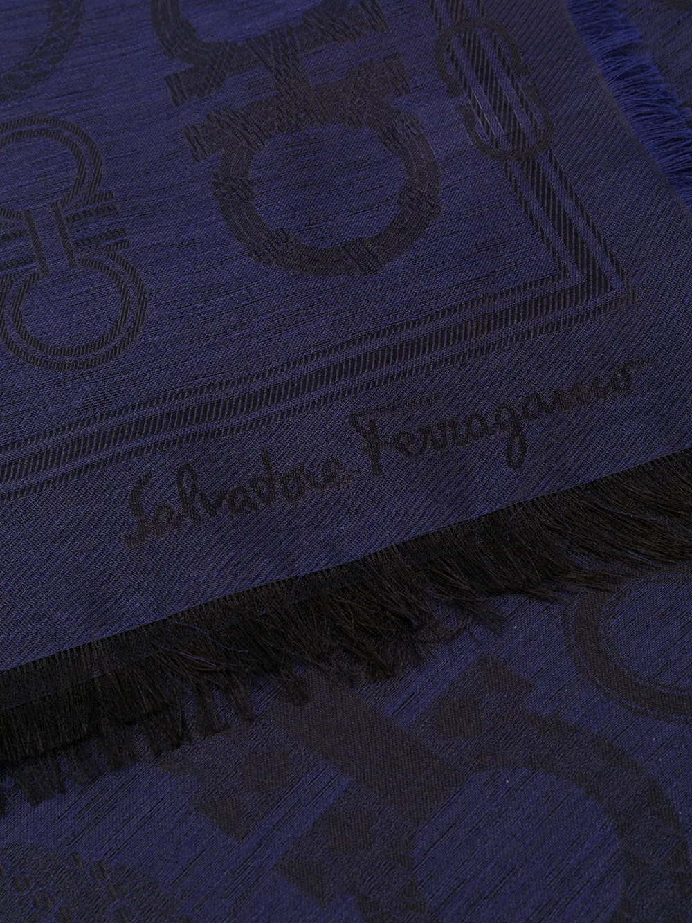 Жаккардовый шарф с узором Gancini Ferragamo, синий