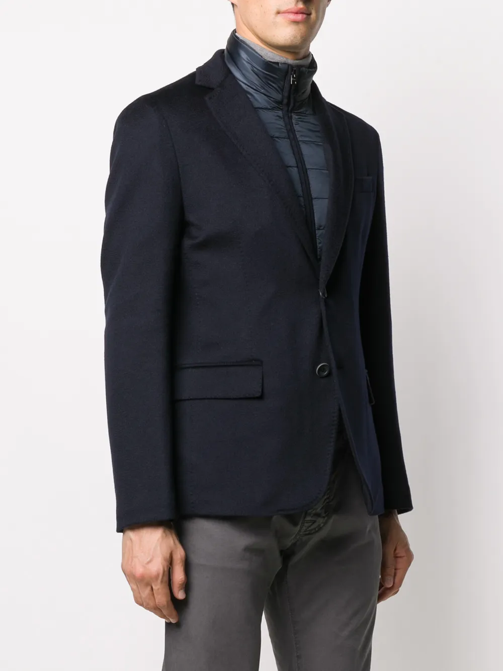 Однобортный пиджак с дутыми вставками Herno, синий