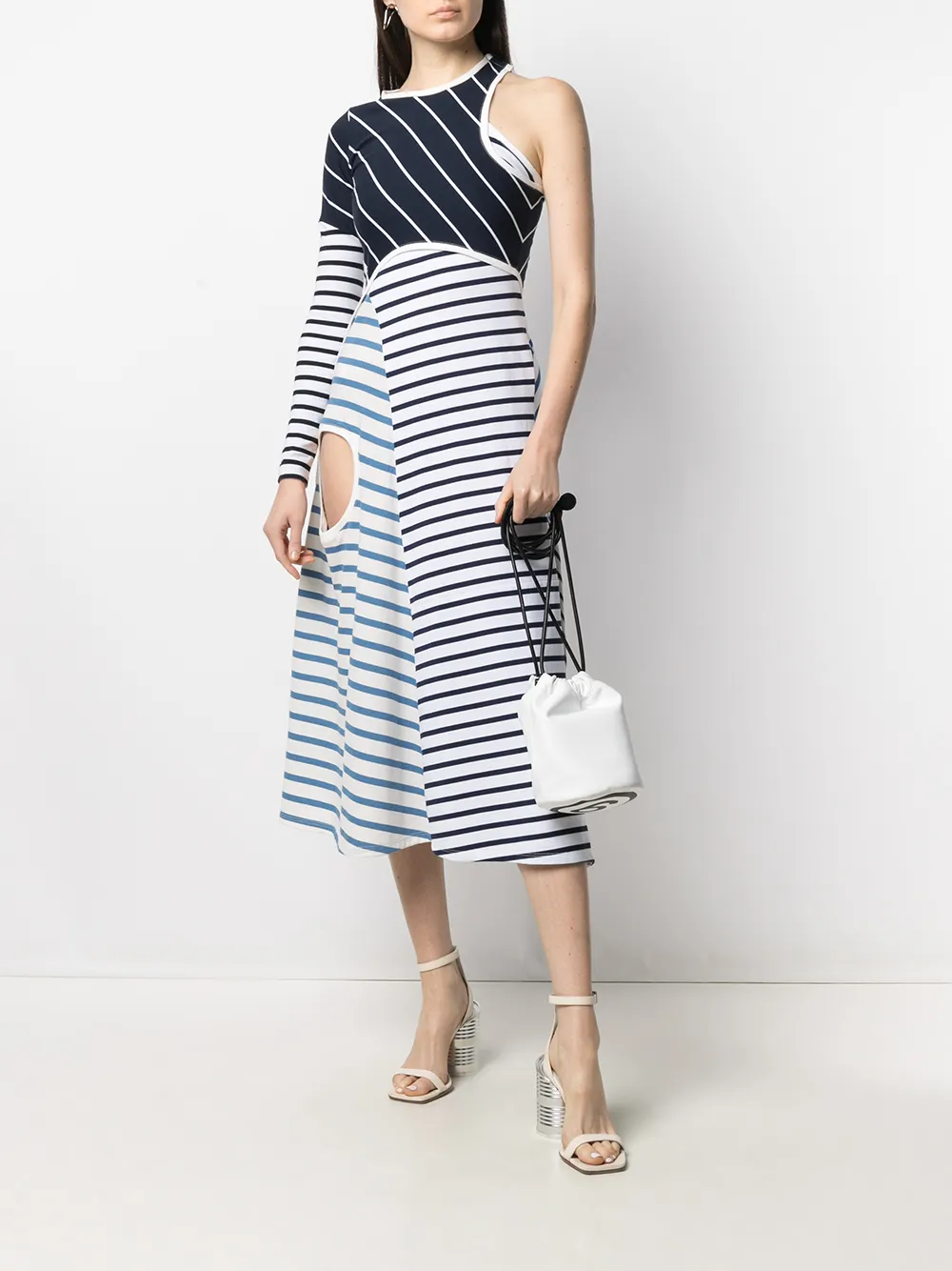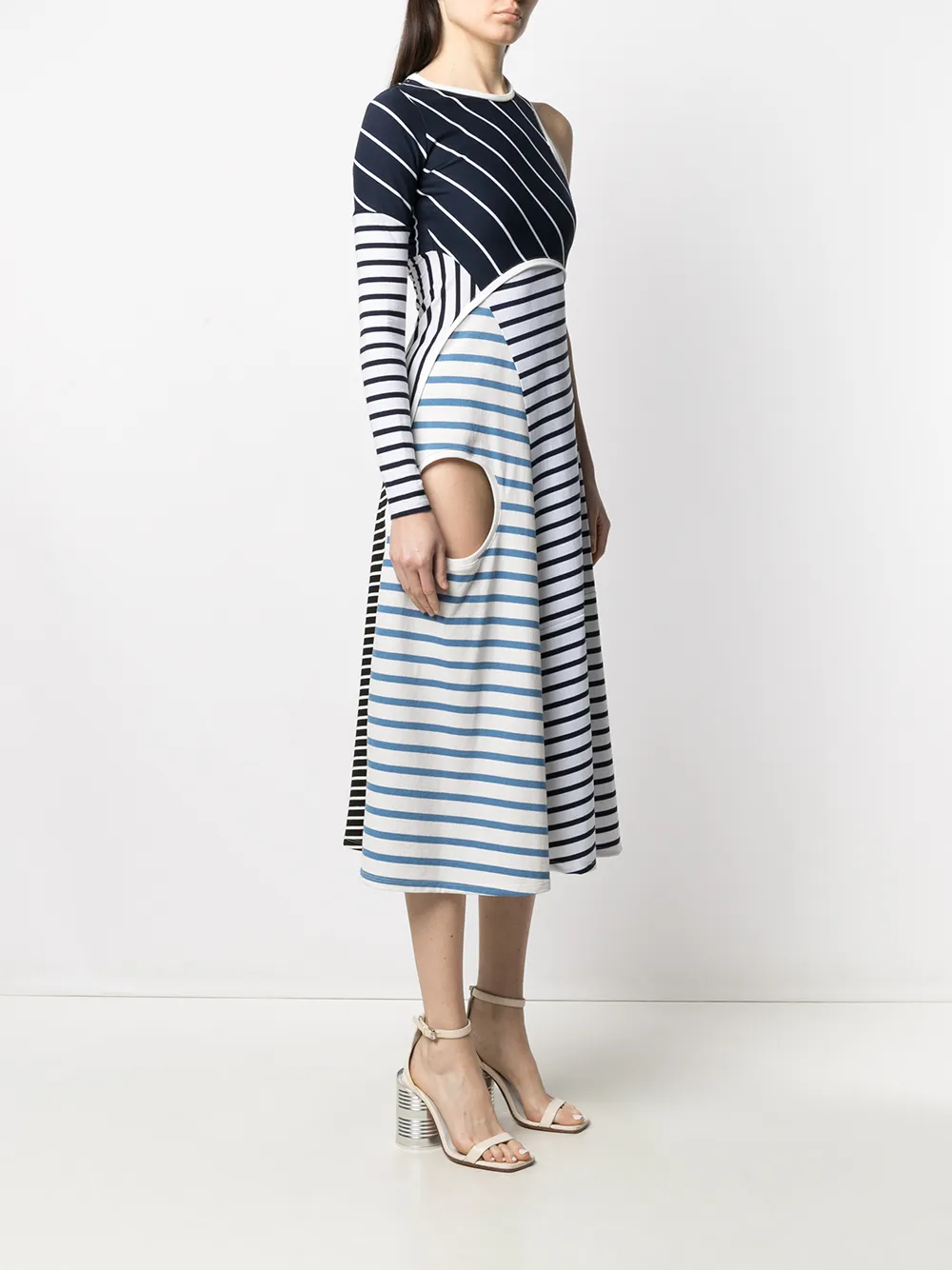 Полосатое платье асимметричного кроя Marine Serre, синий