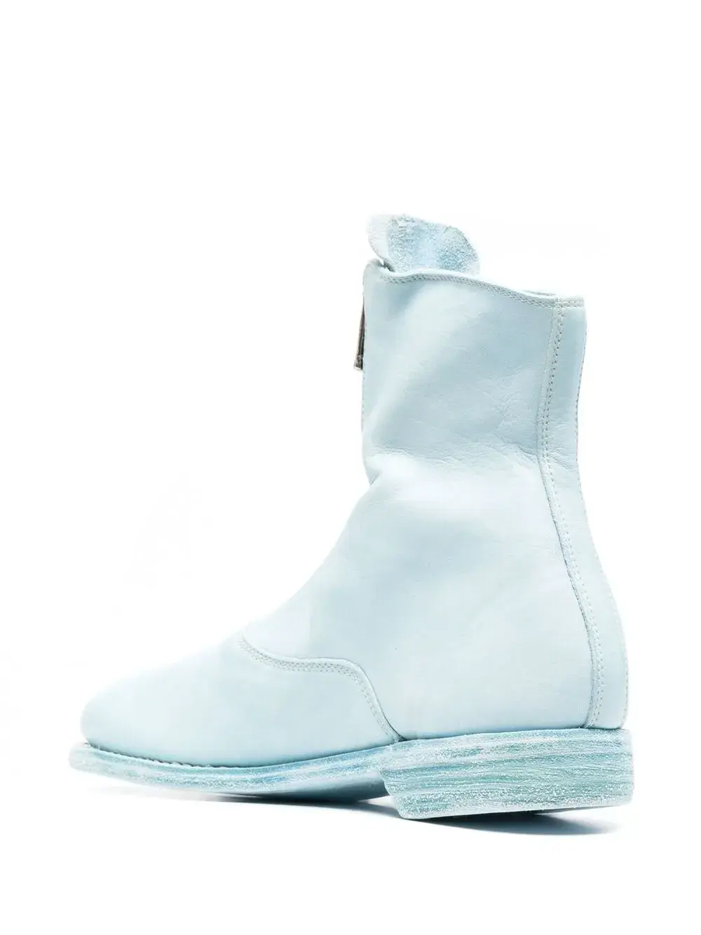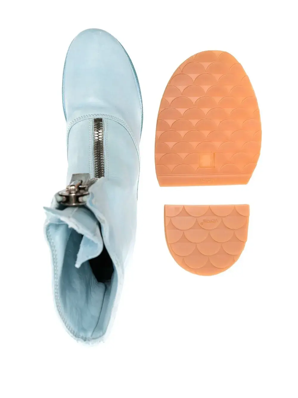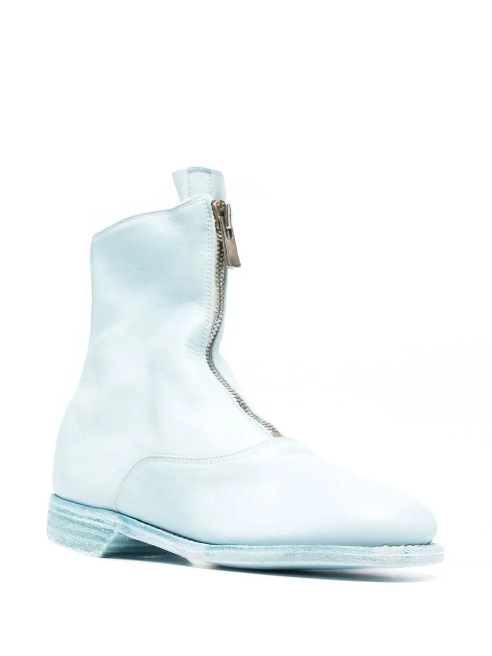 Застежка на молнии спереди, объемная модель, массивный язычок, низкий каблук и закругленный носок.