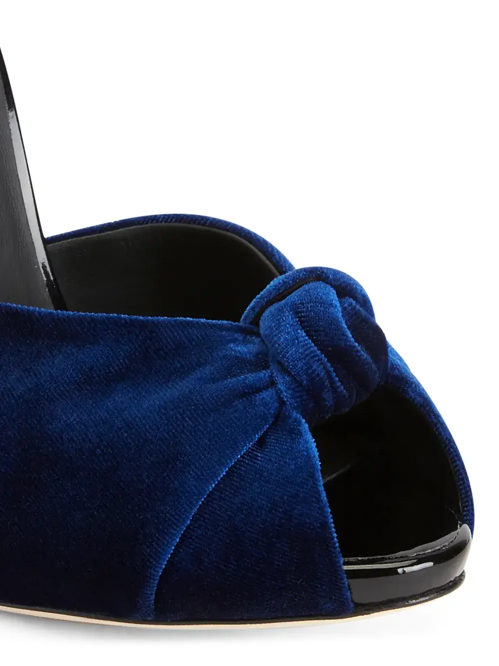 Бархатный эффект, декор в виде узла, открытый носок, закругленный носок, модель без застежки, кожаная стелька с логотипом, высокий каблук и кожаная подошва. Цвет: синий.